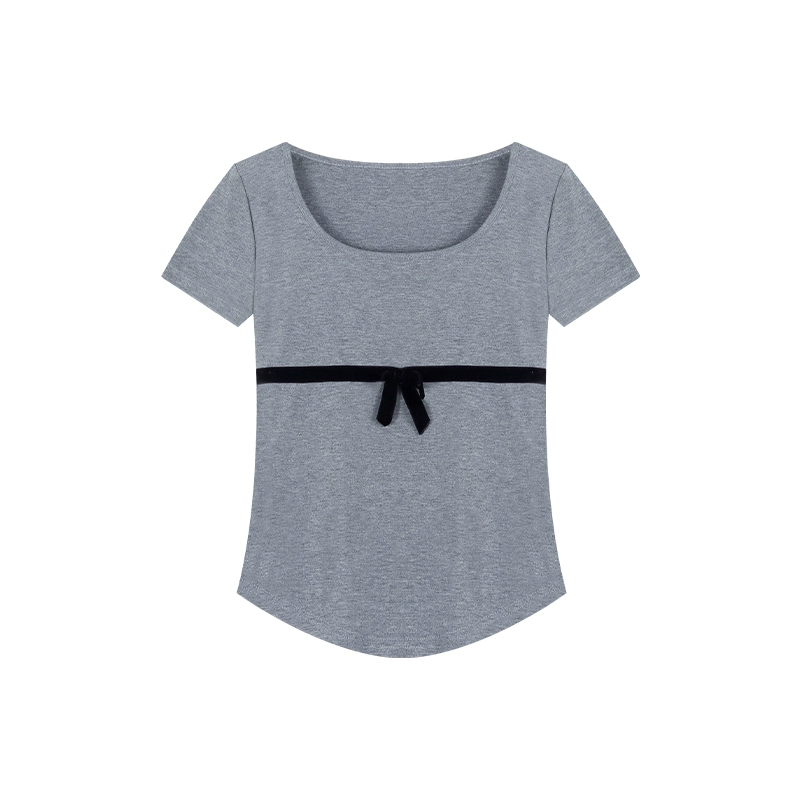 | nameOriginal | Gray U-neck right shoulder women's summer polka dot short-sleeved T-shirt |