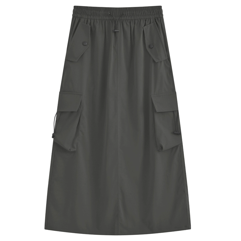 | nameOriginal | Gray women's summer straight mid-length work dress for petites |
