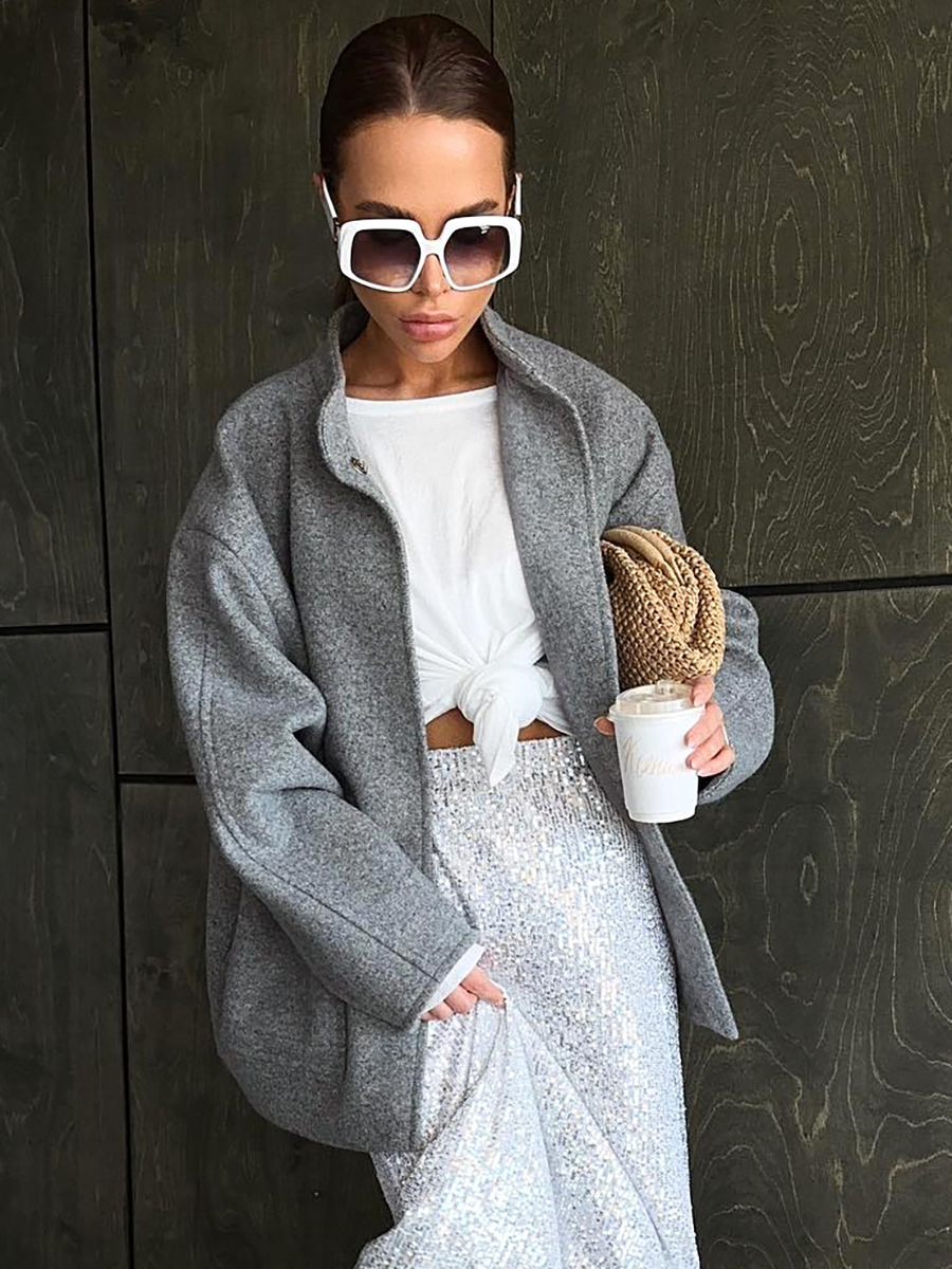 | nameOriginal | Gray woolen coat elegant stand collar 2023 European and American new autumn and winter high sense foreign trade commuter all-matching top for women |