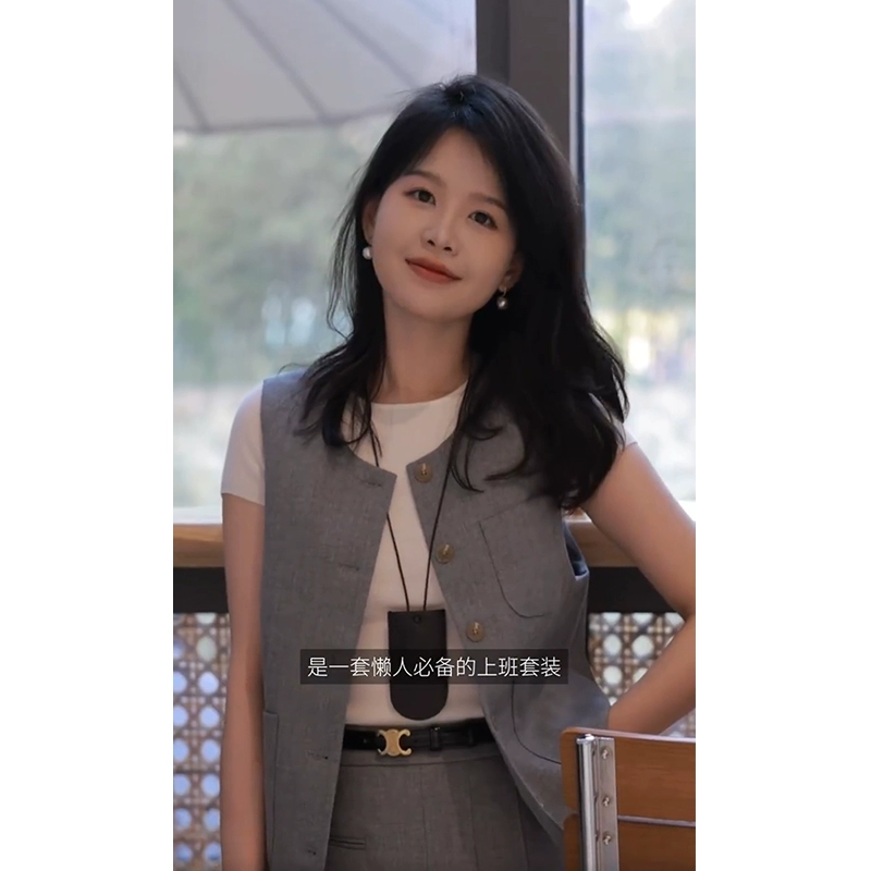 | nameOriginal | Gray workplace round neck commuter top summer vest |
