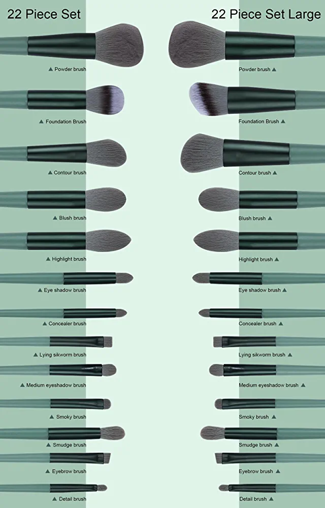 Introducing our combination makeup kit that caters to various makeup needs, making your makeup routine more convenient. This kit is a must-have for all beauty enthusiasts! Please note that we offer two sizes: a 22 Piece Set and a 22 Piece Set Large. To compare the differences, please refer to picture 4. The Regular brushes are perfect for beginners, while the Large brushes are more suitable for professionals. Kindly confirm your preferred size before placing an order.