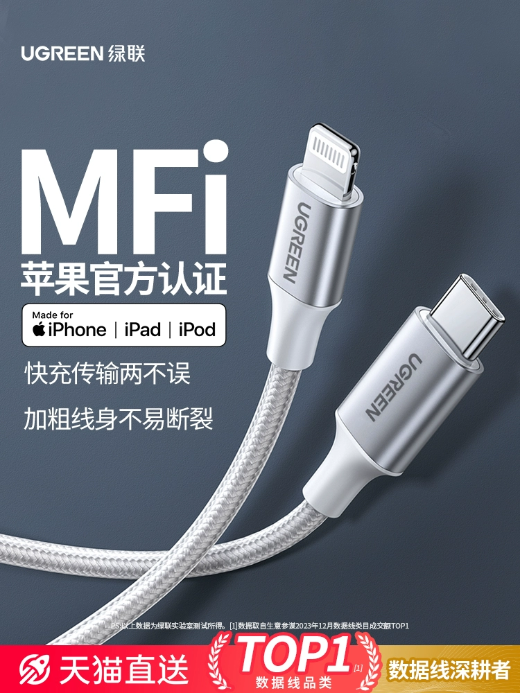 | nameOriginal | Green Alliance applicable Apple charger cable PD fast charging mfi certified iphone14pro15 data cable 20w30w12 mobile phone max13ipad car typec to lightning 2 meters braided |