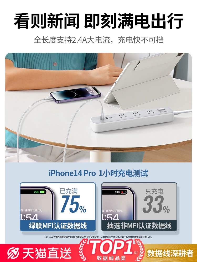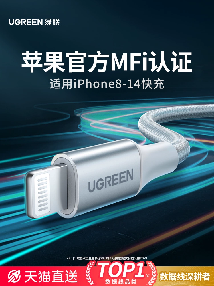 | nameOriginal | Green Alliance applicable Apple charging cable mfi official certified data cable iPhone14/13/12Promax11xr7plus8 mobile phone iPad short extension 2 meters USB car PD fast charging cable |