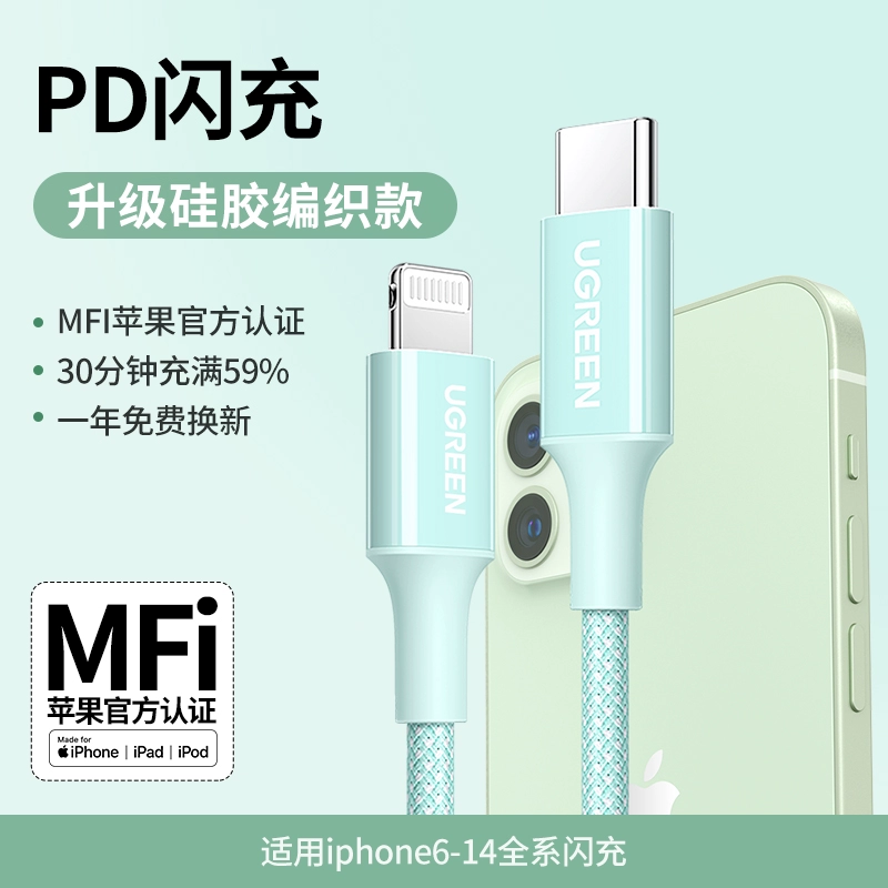 | nameOriginal | Green Alliance applicable Apple data cable iphone16pro charging cable 13pd fast charging head mfi certified 14max15plus mobile phone tablet long silicone braided lightning to typec |
