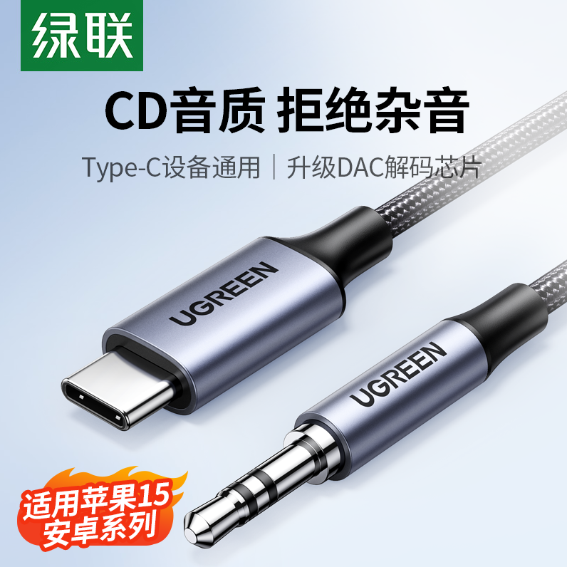 | nameOriginal | Green Alliance aux audio cable car typec to 3.5mm audio box connection cable mobile phone output conversion car music player computer headset dual plug DAC decoding data dedicated line |
