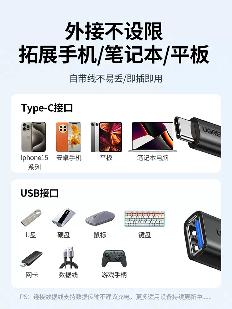Green Alliance OTG adapter cable USB typec to USB connector oral transmission suitable for Apple 15 data cable proMax