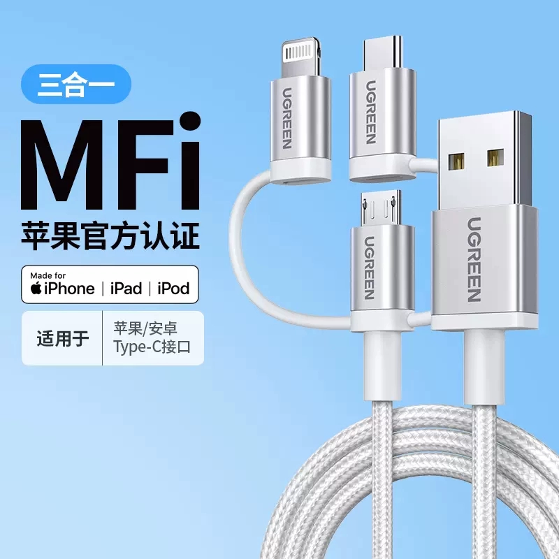 | nameOriginal | Green Alliance three-in-one data cable MFI certified one-to-three power bank cable suitable for Apple 15 iPhone 14 Huawei Honor Xiaomi mobile phone Android type C head car multi-function fast charging cable |