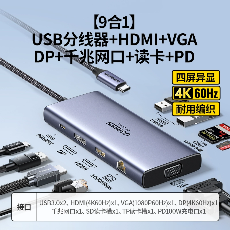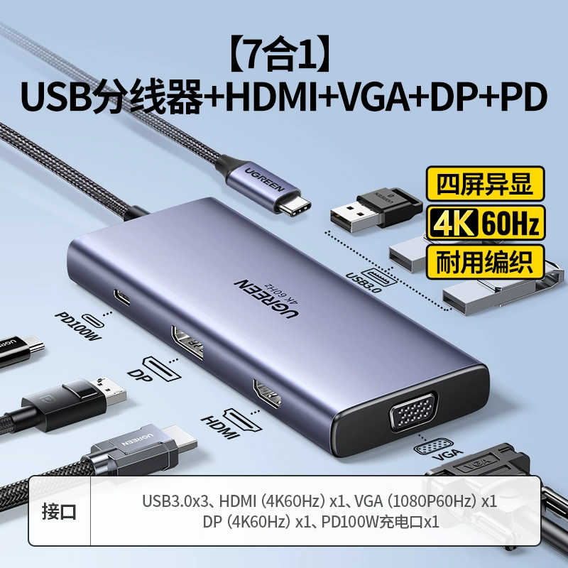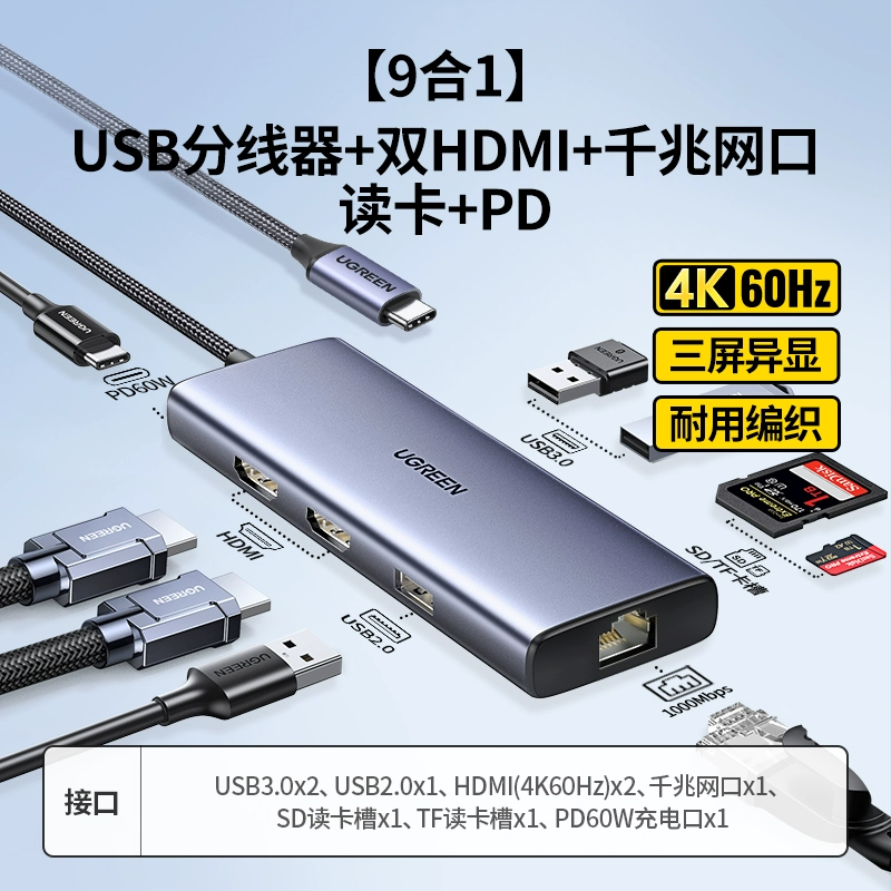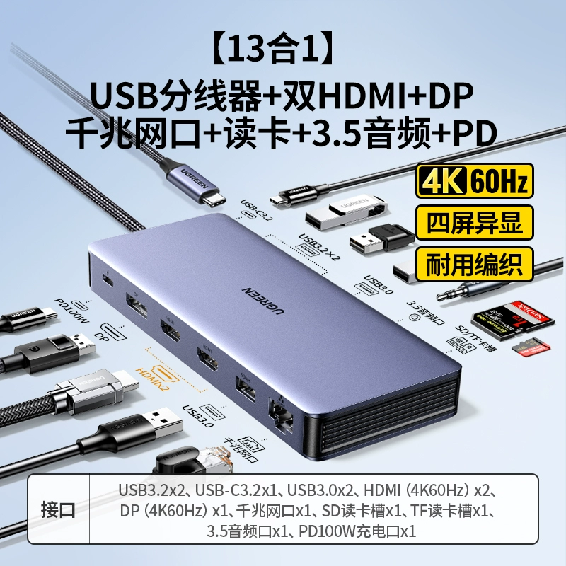 | nameOriginal | Green Alliance typec docking station expands dual HDMI high-definition 4K60hz projection screen three-screen different display USB splitter Thunderbolt 4 graphics card converter accessories network cable interface suitable for laptops |