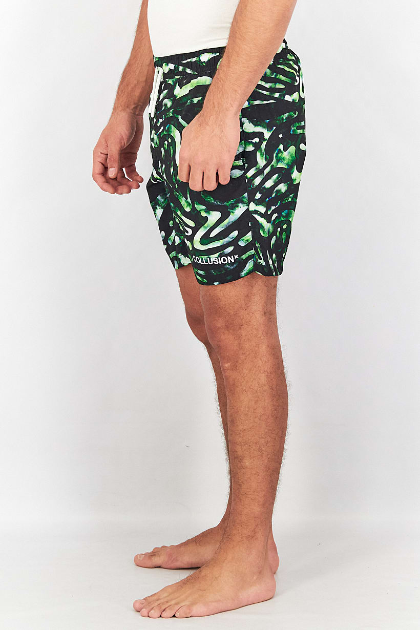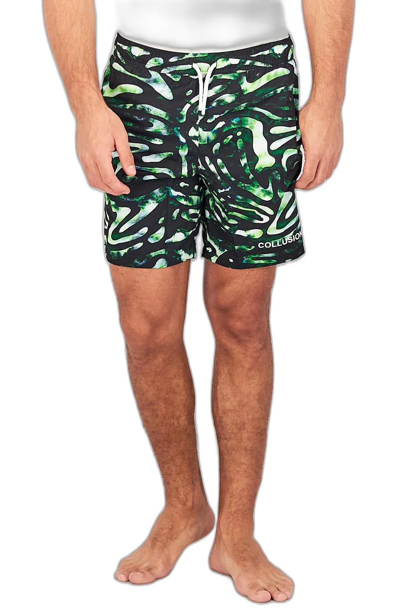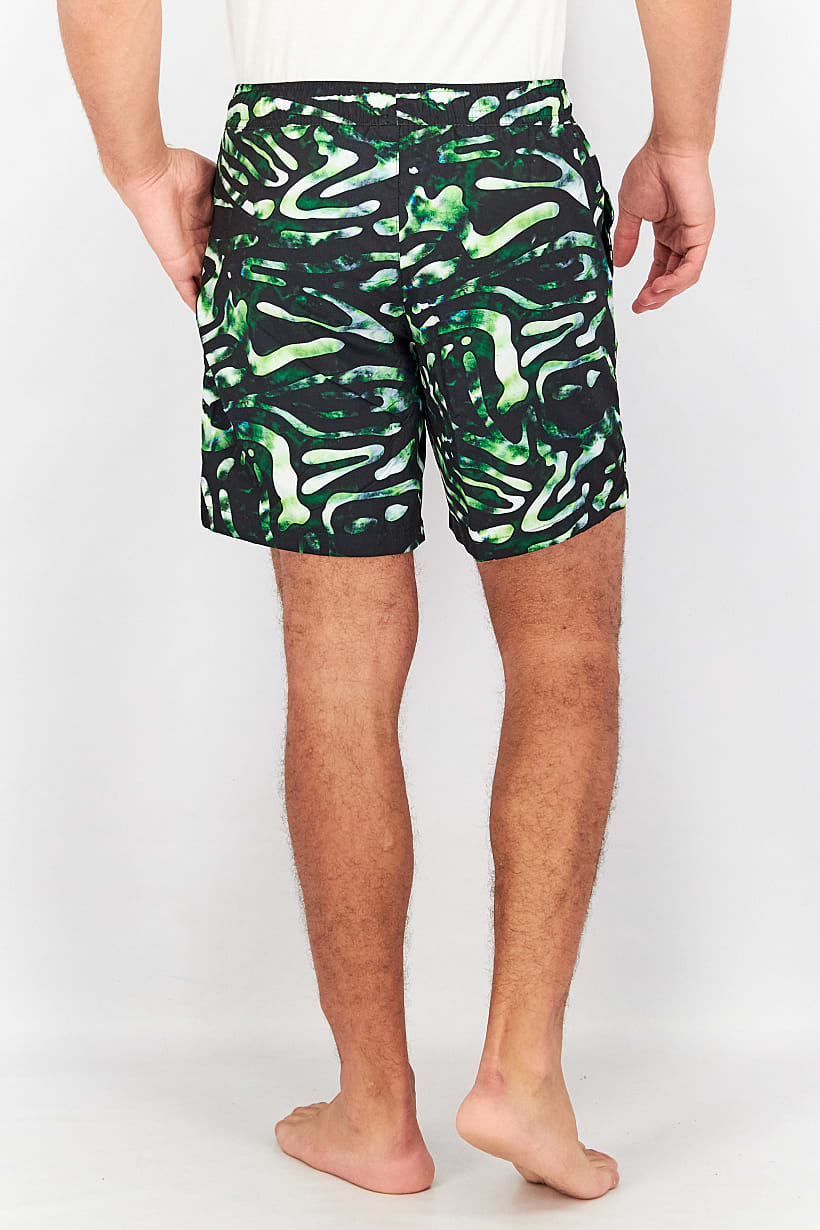 This product is easy to care for as it is machine washable. It has a regular fit and is available in international sizes. The hem is straight and the bottom closure features a drawstring. Please note that the product color may appear slightly different due to lighting or monitor settings. Made from 100% polyester, this item features a brand logo pattern and print in green and black. It is suitable for both men and women and is designed as board shorts for swimming.