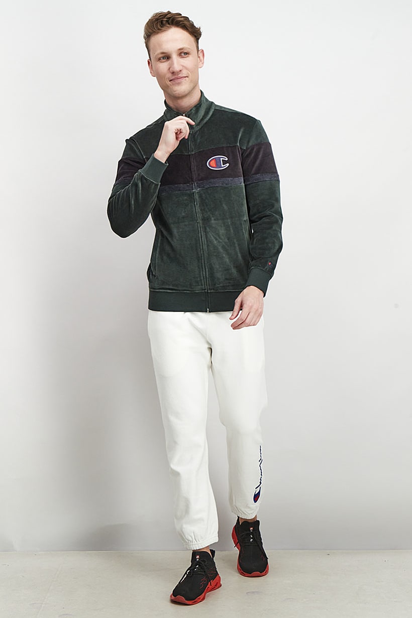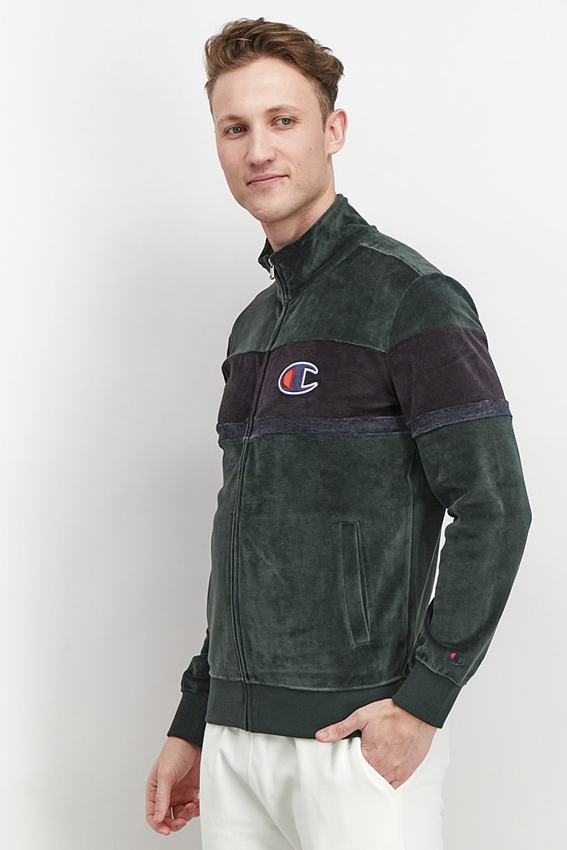 | nameOriginal | Men Custom Fit Full Zip Embroidered Logo Training Velvet Sweatshirt, Green and Black |