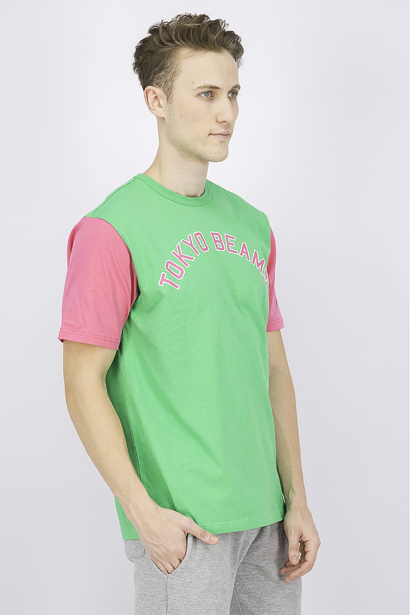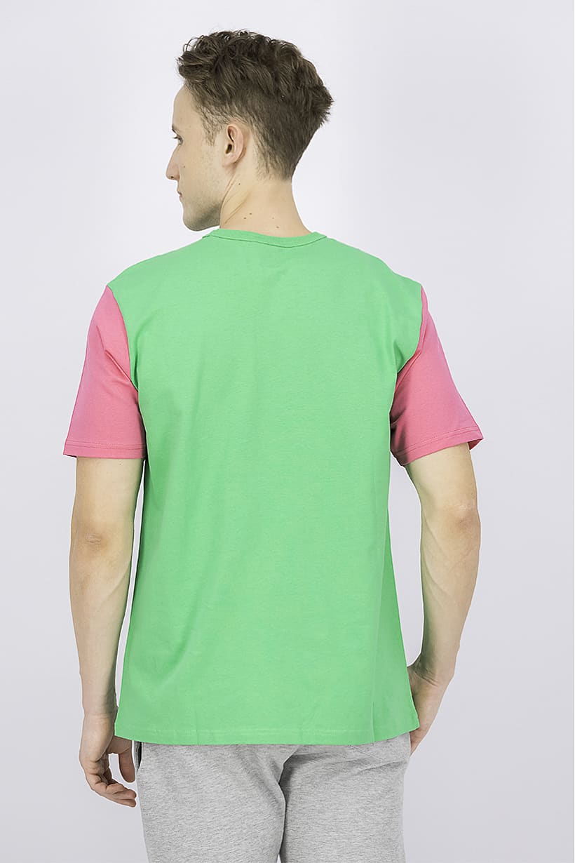 | nameOriginal | Men Crew Neck Short Sleeve T-shirt, Green and Pink |