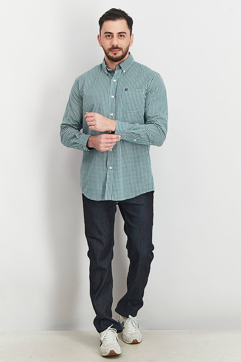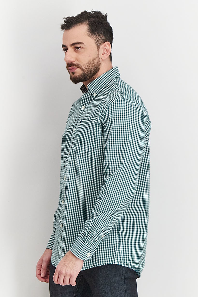 | nameOriginal | Men Easy Flt Gingham Long Sleeve Casual Shirt, Green and White |