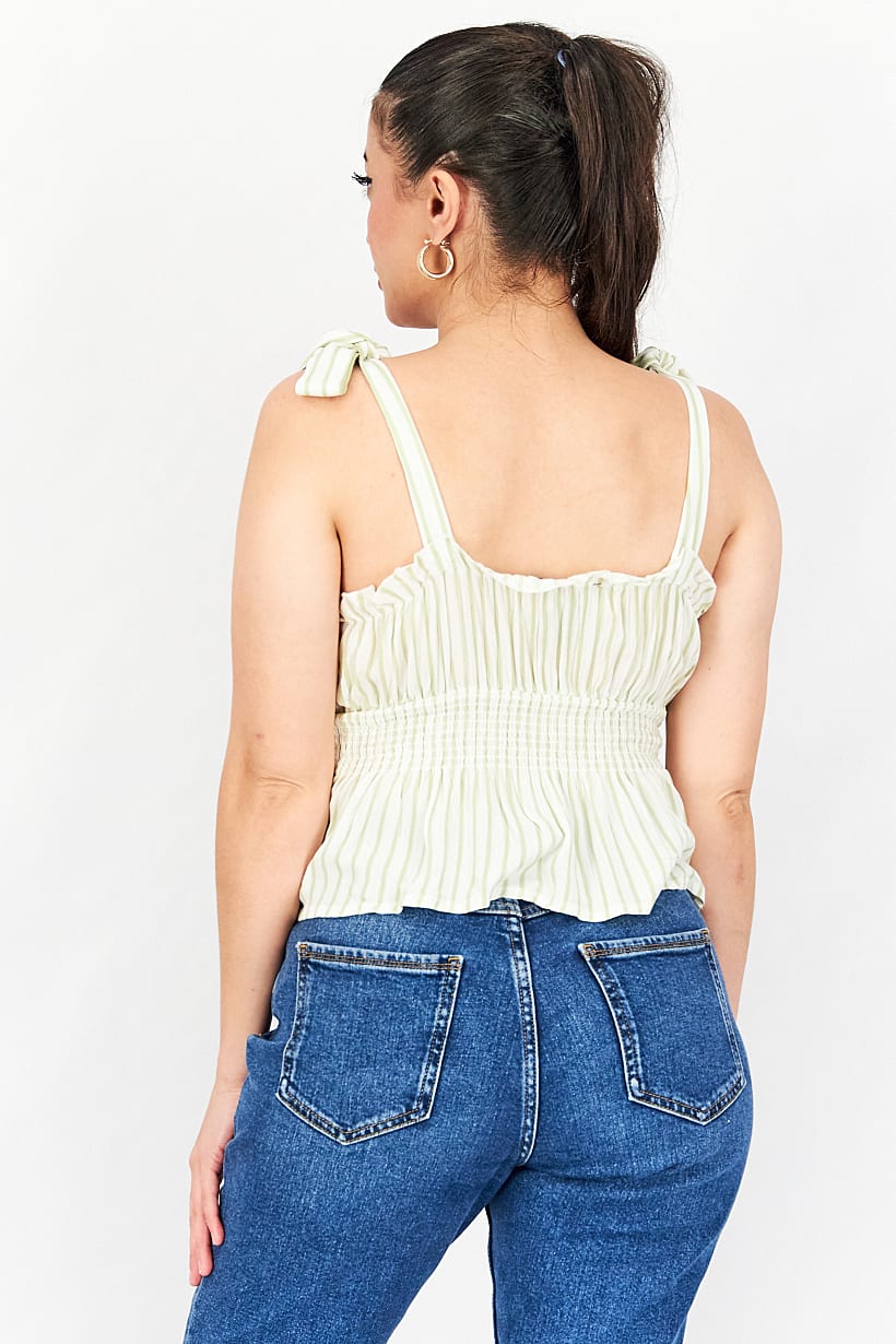 | sub_Categories | Women Clothing, Tops & Tees, women square neck sleeveless striped print top green white |