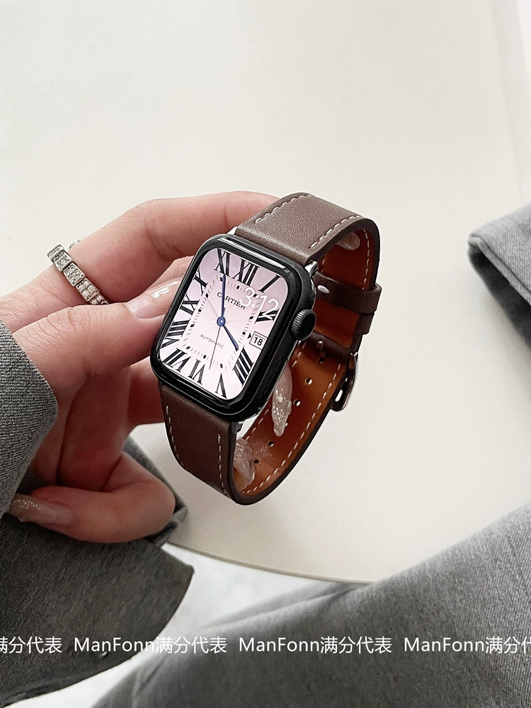 Green suitable for Apple watch strap applewatch987 genuine leather versatile iwatch10SE65 men and women