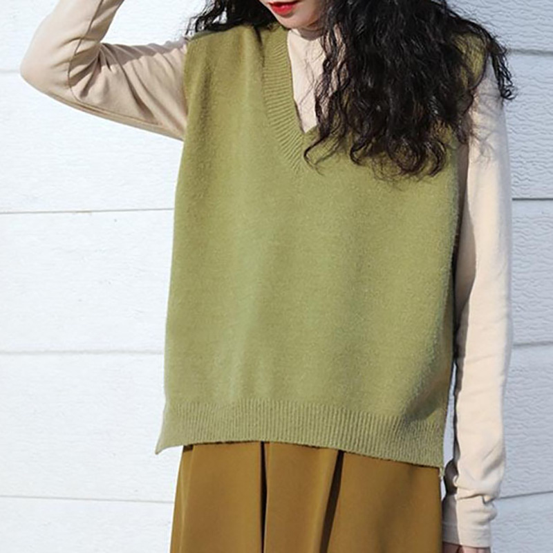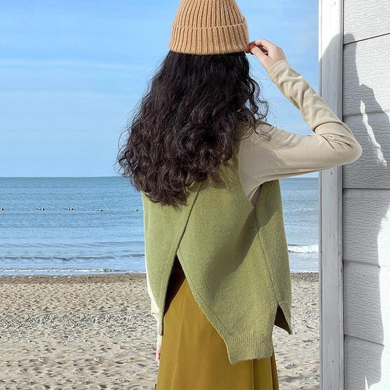| nameOriginal | Green Back Split Design Stacked Outer Vest Women's 2024 Spring New Korean Niche Casual Knitted Vest |