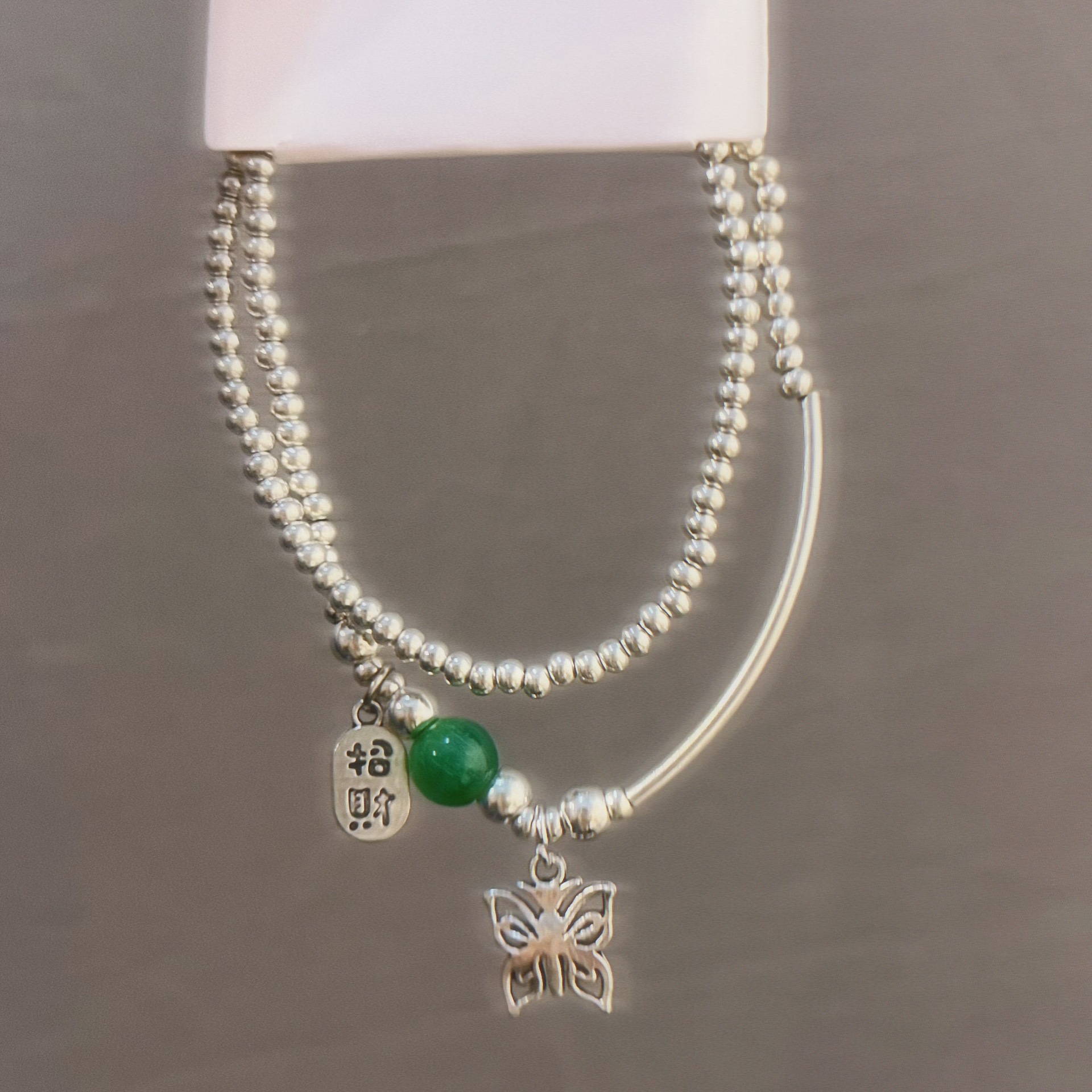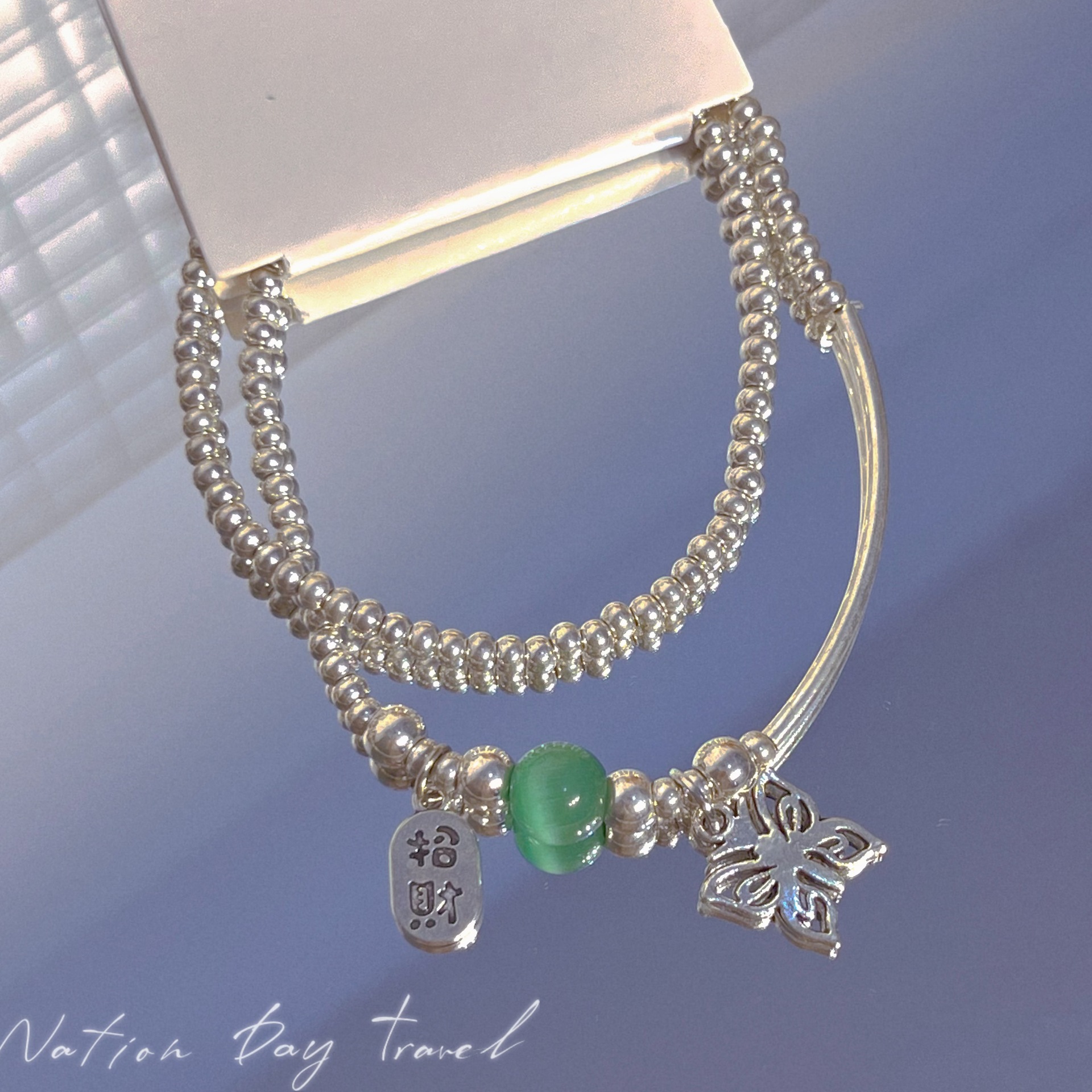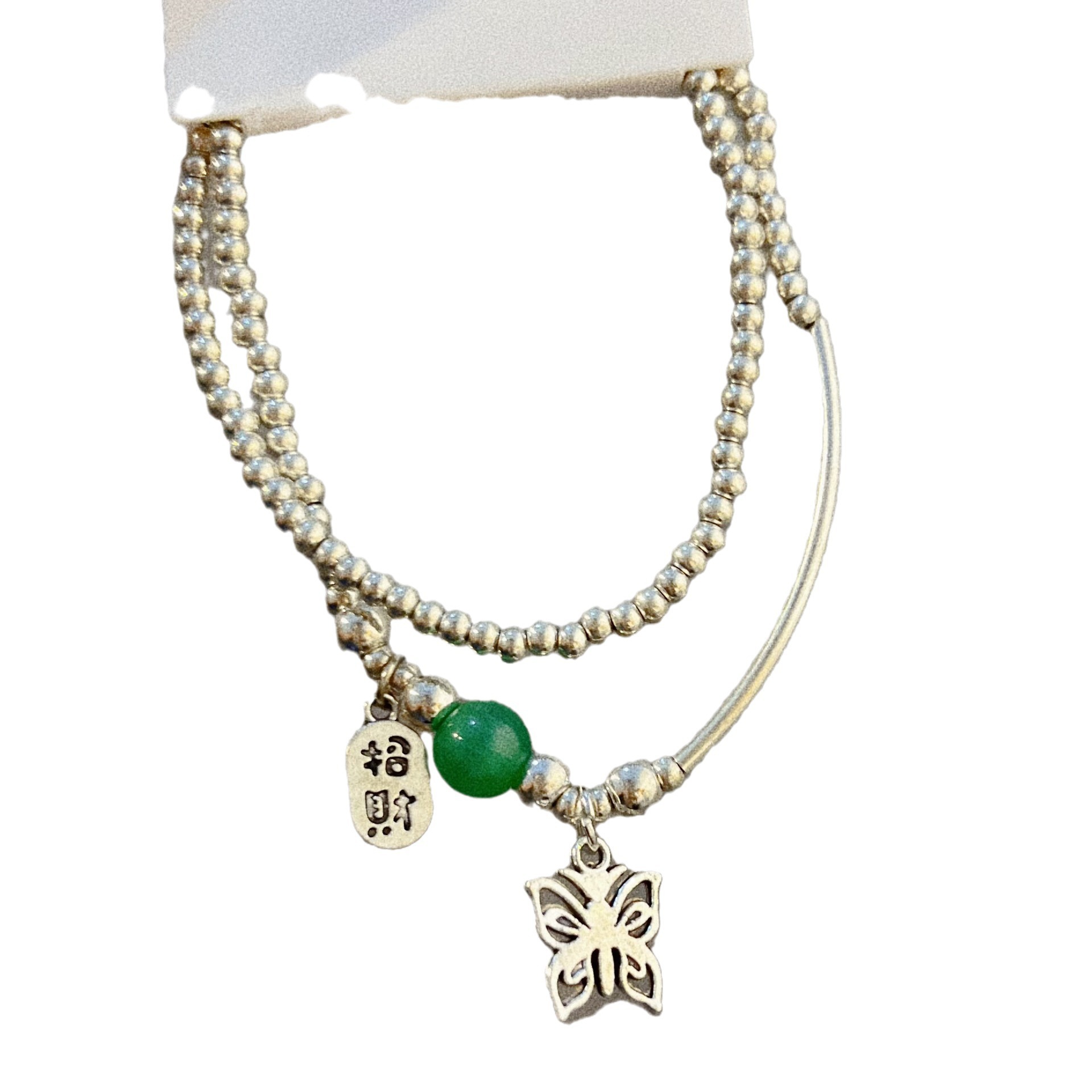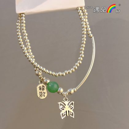 Green beads butterfly NAFU bracelet female ins niche design girlfriends students send girlfriend Fu word stacked bracelet