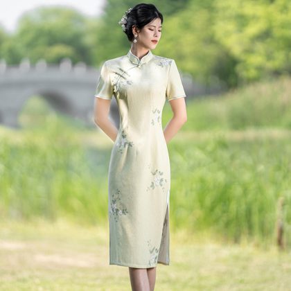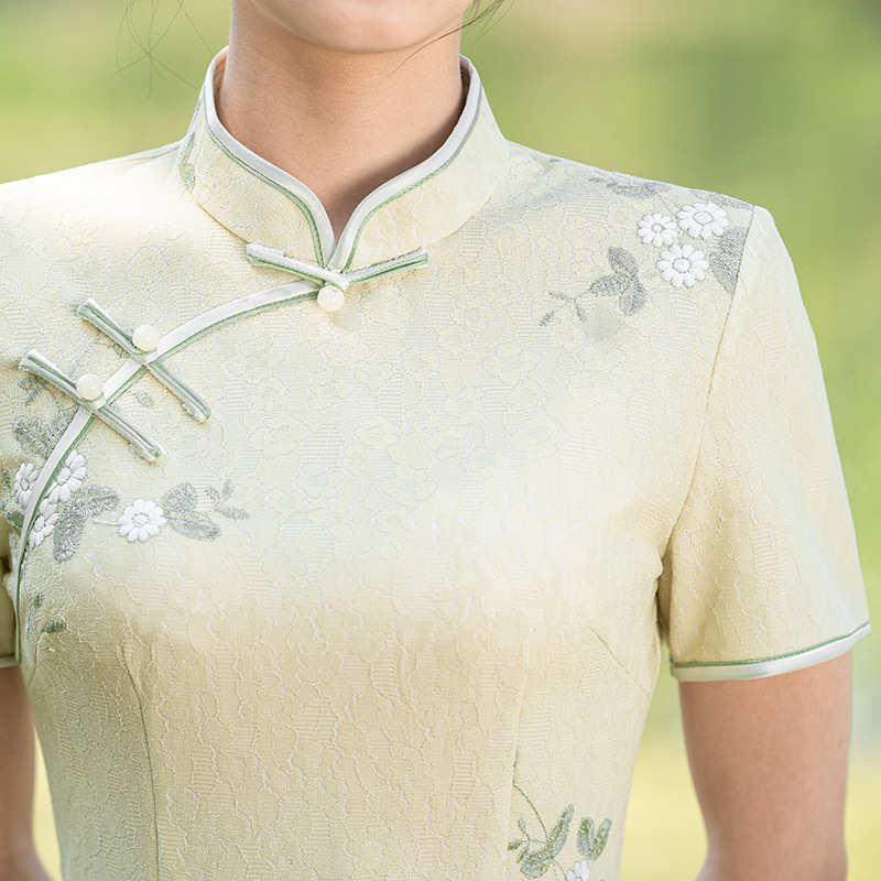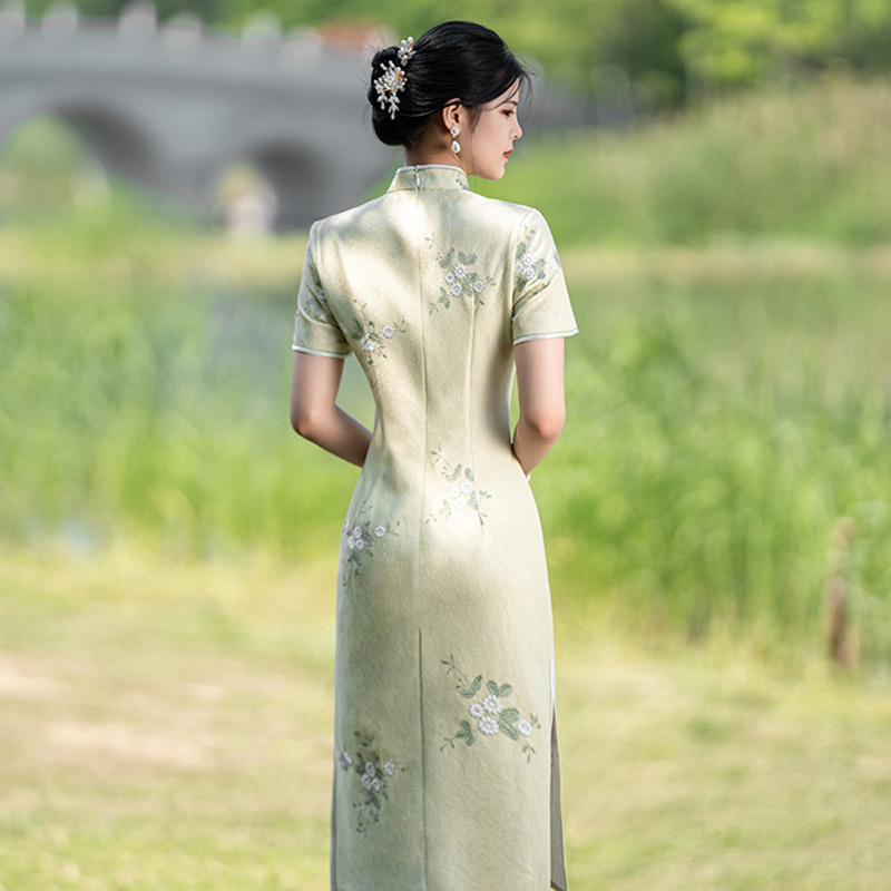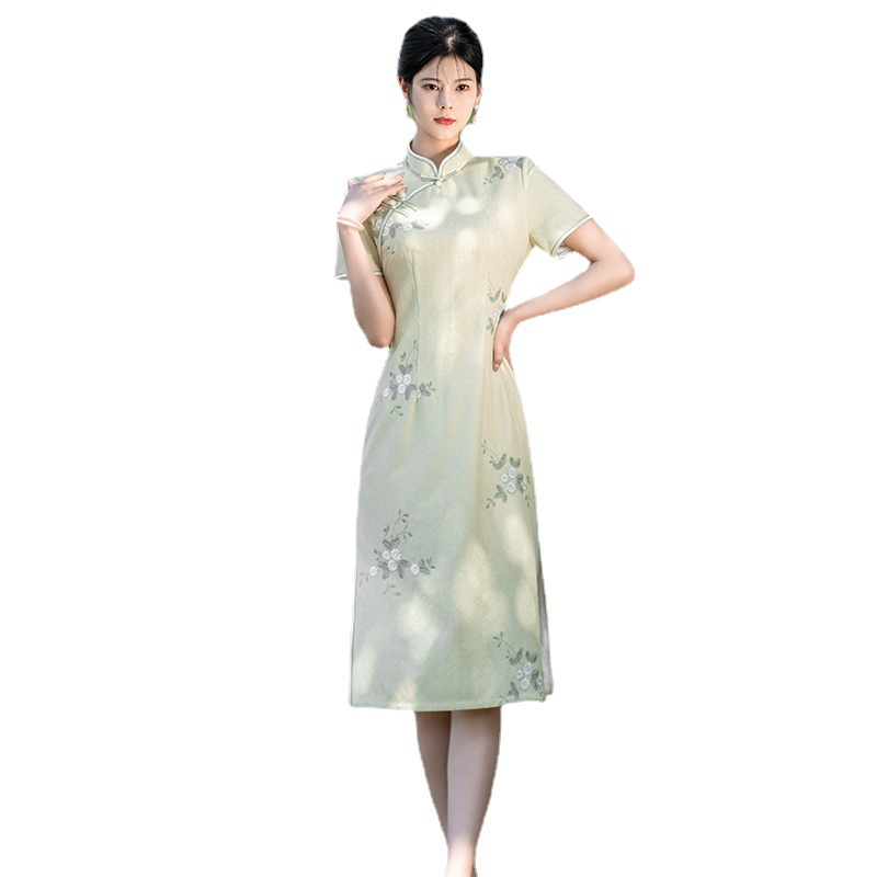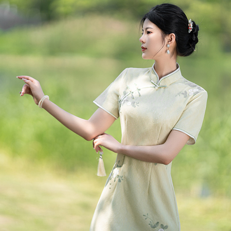 Green Cheongsam New 2024 Young Style Elegant Girl Fresh and Elegant Improved Version Small dress Summer