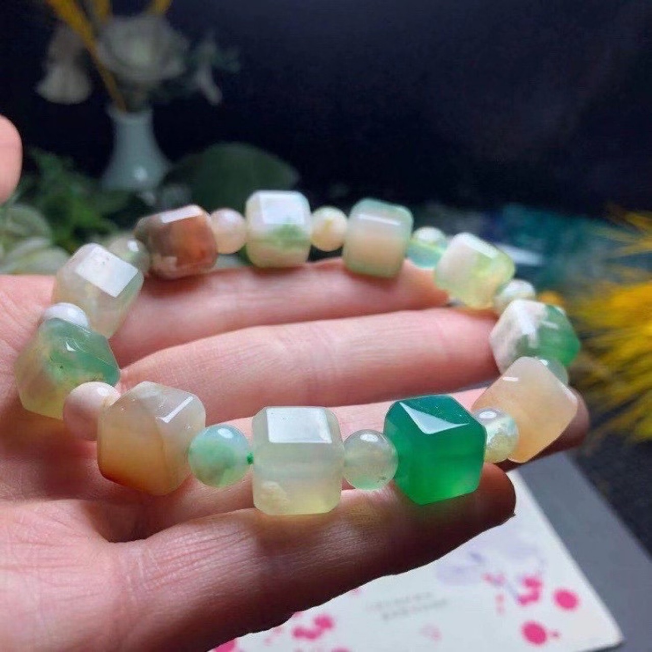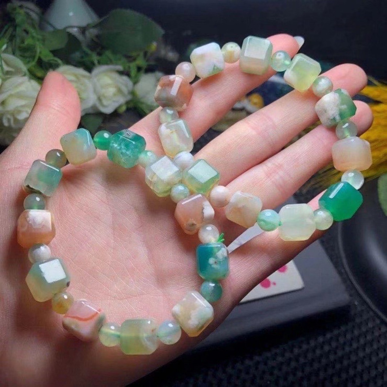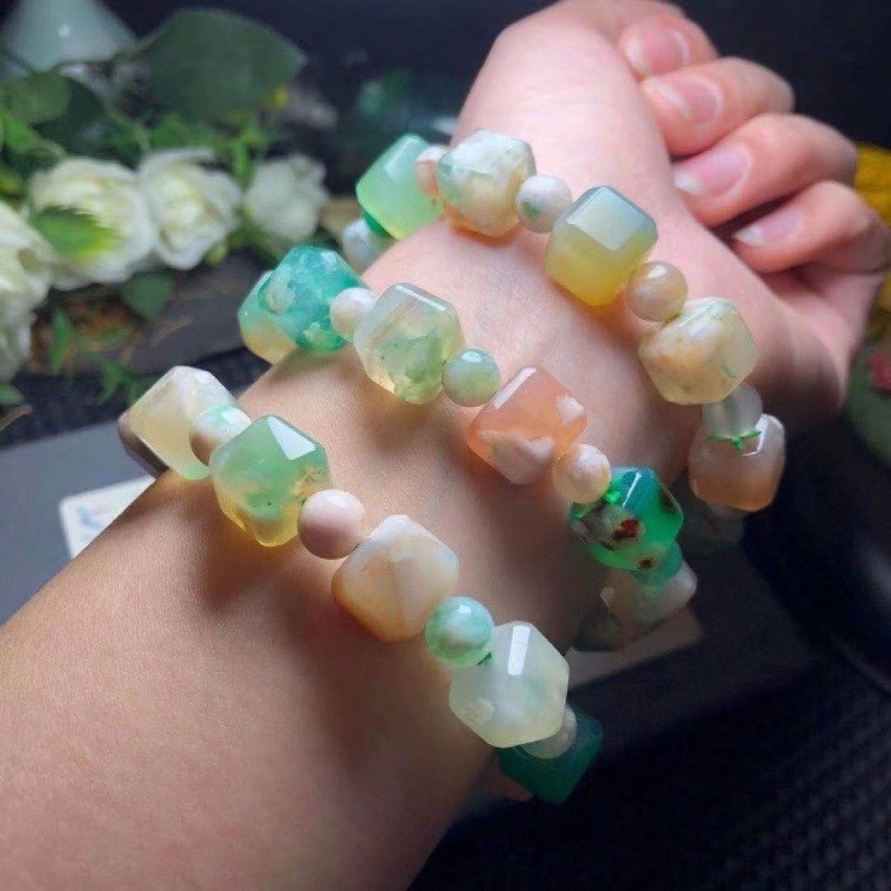 | nameOriginal | Green Cherry Blossom Agate Handstring Women's Sugar Square Design Fashion Jewelry Cross-Border |