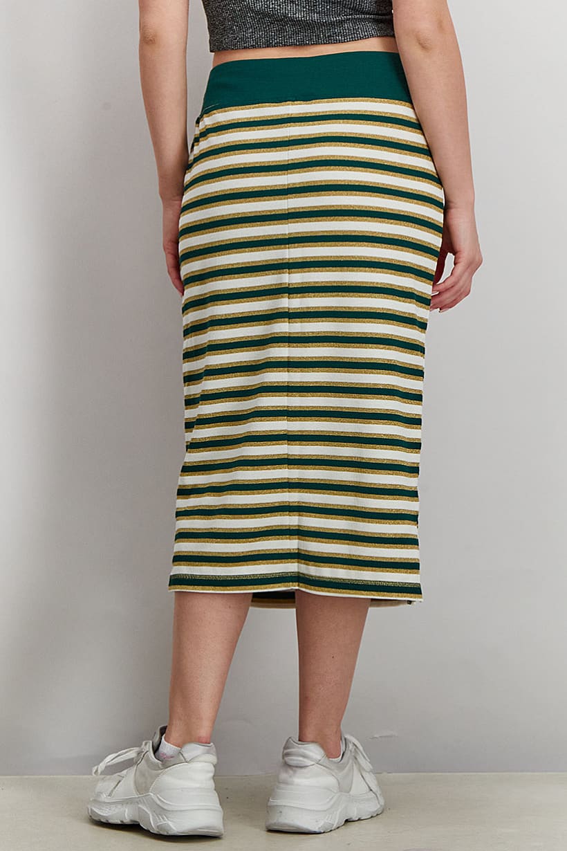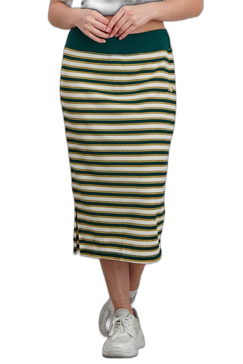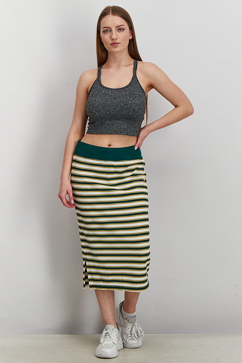 Green Combo Athletics Skirt with Lurex Stripes for Women’s Fitted Fit.