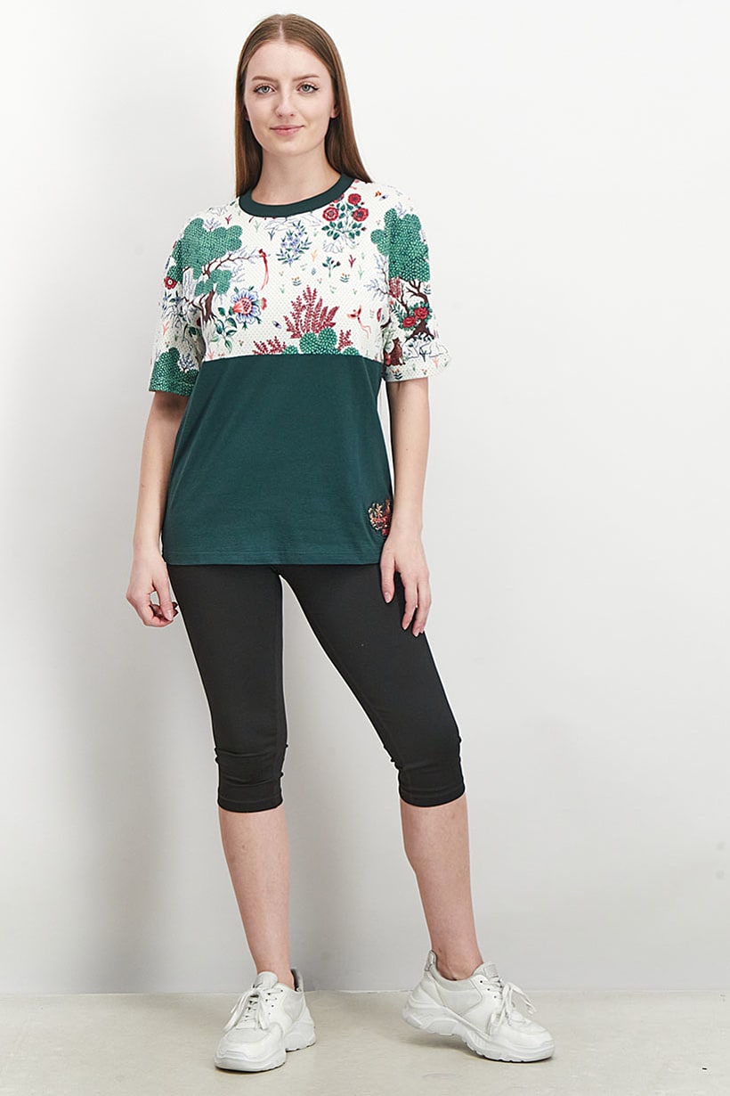 | nameOriginal | Women Sportswear Fit Floral Print T-shirt, Green Combo |