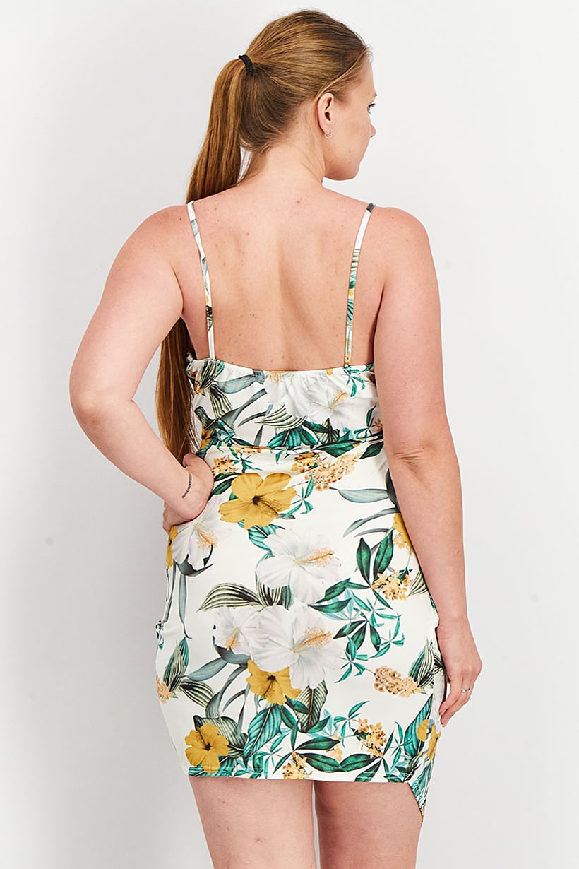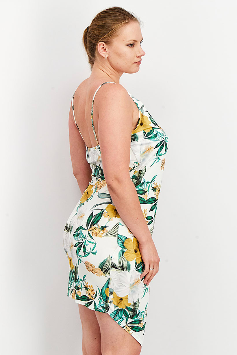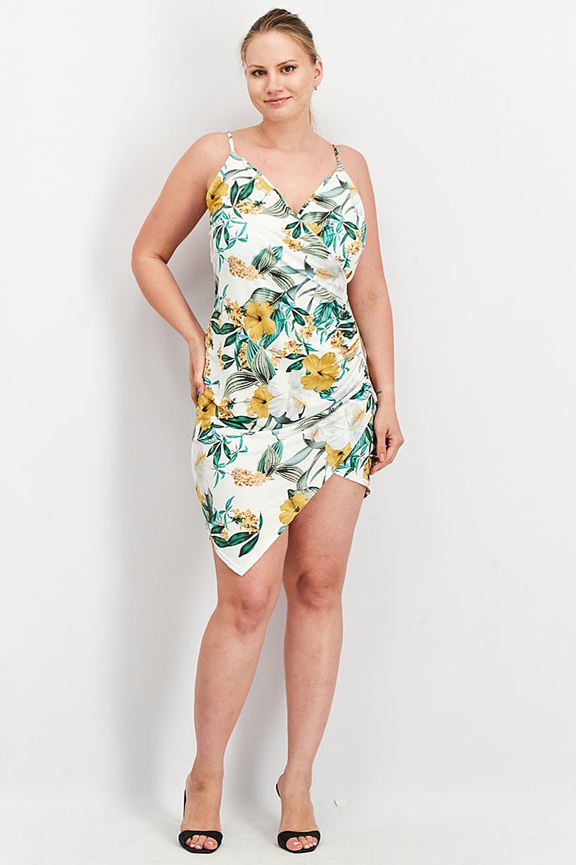 Care : Machine washable, Dress Style : Mini, Fit : Regular fit, Size shown : US, Types of Hem : Asymmetrical hem, Types of Sleeve : Sleeveless, Fabrics : 95% Polyester, 5% Elastane, Occasion : Casual, Pattern & Print : Floral Print, Types of Closures : Pullover, Color Family : Green, Types of Neckline & Collar : V-neckline,