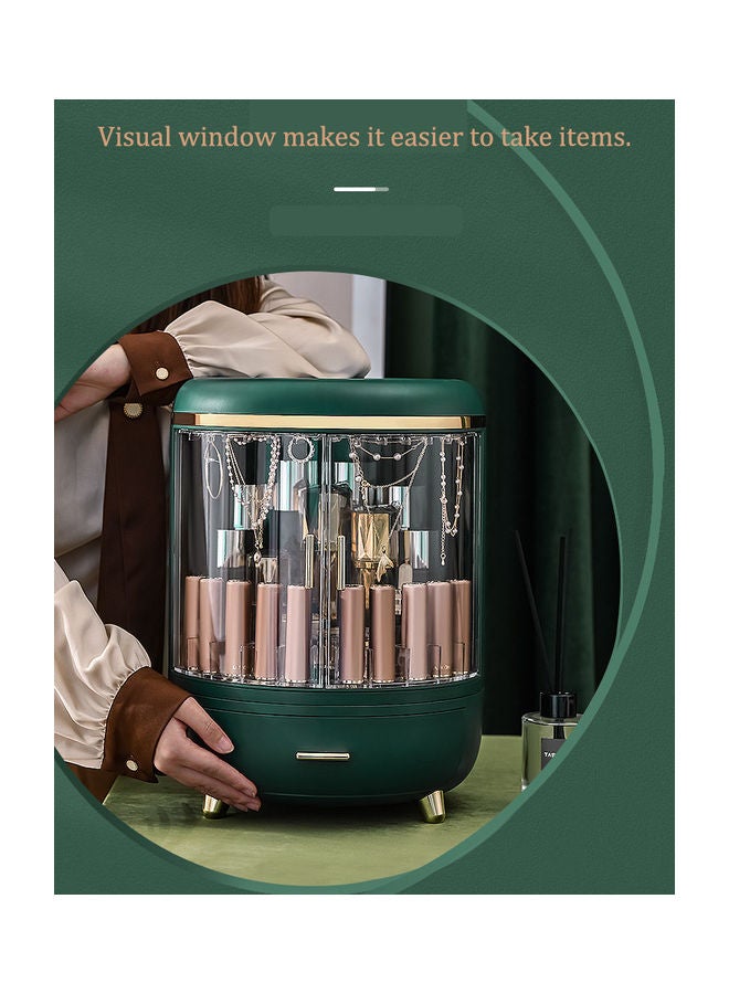 Introducing our Cosmetic Layered Storage Cabinet with LED Mirror and Drawer in Green, the perfect addition to your beauty routine! This cabinet is designed to keep all of your cosmetics organized and easily accessible. The layered storage system allows you to separate your products by category, making it easy to find what you need. The LED mirror provides bright and clear lighting, making it easy to apply makeup or do your skincare routine. The drawer at the bottom of the cabinet provides additional storage space for larger items such as hair tools or skincare devices. The green color adds a pop of color to your vanity or bathroom, making it a stylish and functional piece of furniture. Upgrade your beauty routine with our Cosmetic Layered Storage Cabinet with LED Mirror and Drawer in Green!