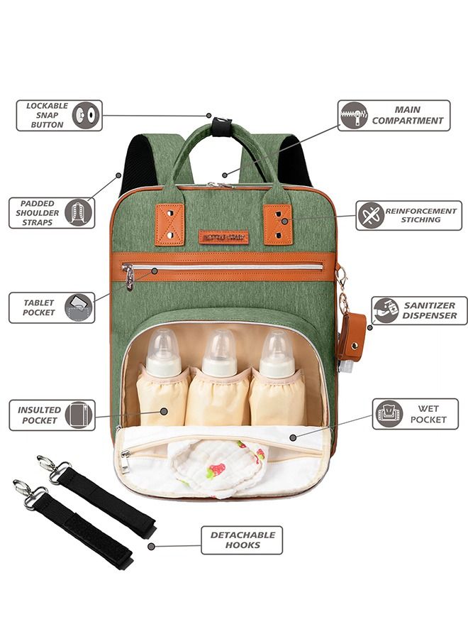Made from high-quality materials, this diaper bag is durable and built to last. The green color adds a touch of style to your parenting routine, making it a great accessory for any outfit. Whether you’re running errands or going on a family vacation, the 2 in 1 Diaper Bag with Sanitizer Bottle Keychain and Stroller Hooks in green is the perfect companion for any parent.
