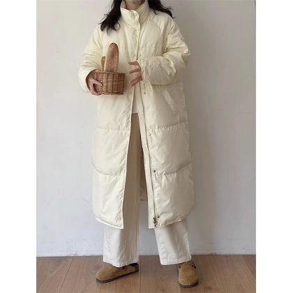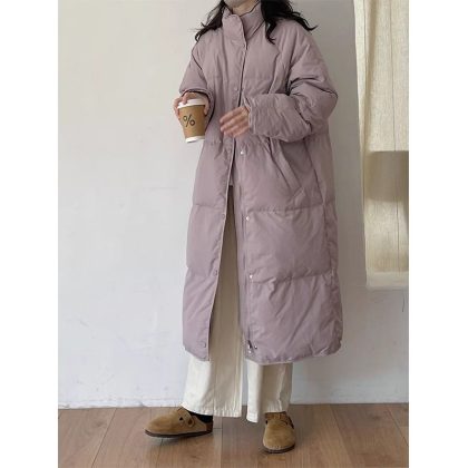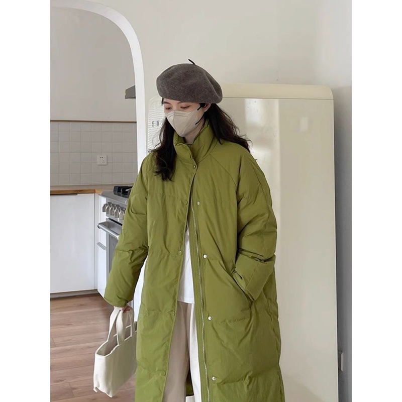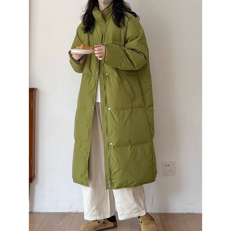 | nameOriginal | Green Down Jacket Women's Mid-length 2024 New Korean Style Loose Design Sense Vertical Collar White Duck Down Winter Jacket |