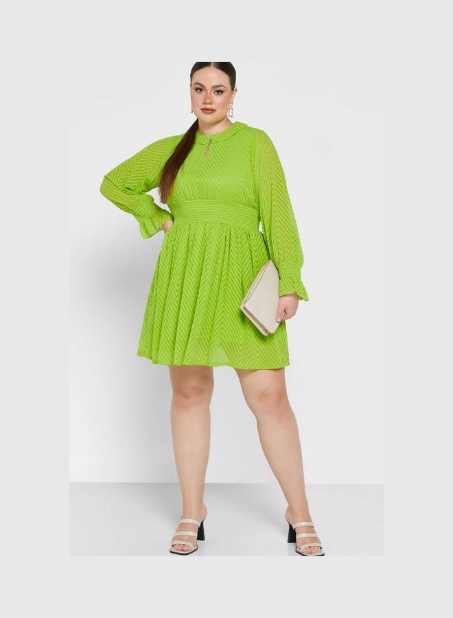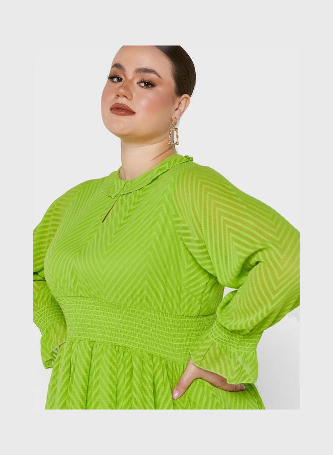 | nameOriginal | Puff Sleeve Flare Dress Green |