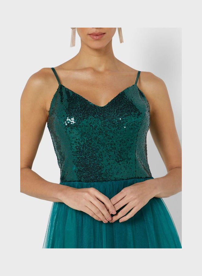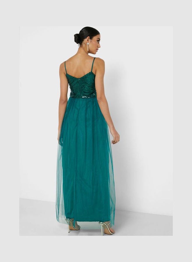 Make a statement at your upcoming special occasion with this stunning dress adorned with shimmering embellishments. Crafted from a mid-weight, textured polyester fabric, it features a diamond neckline and slim shoulder straps for an elegant look. The concealed zipper placket ensures a secure fit, while the maxi length and flared hem style add a touch of sophistication.