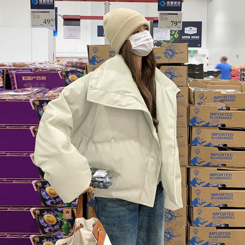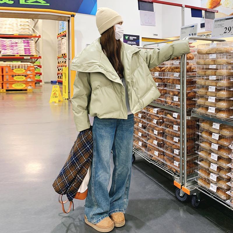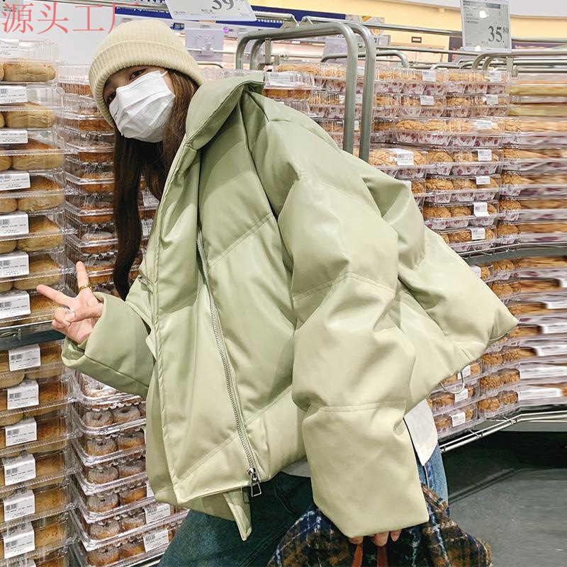 | nameOriginal | Green fashion PU leather down jacket women's short 2024 Winter New loose thickened 90 white duck down warm coat |