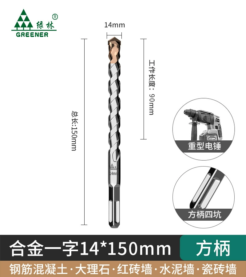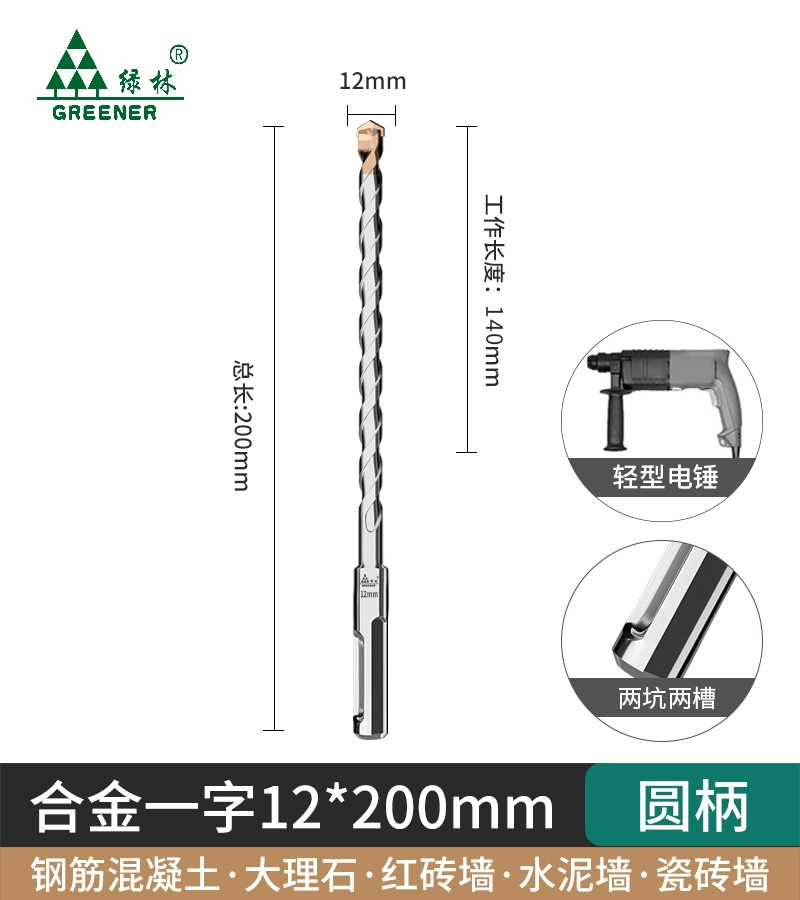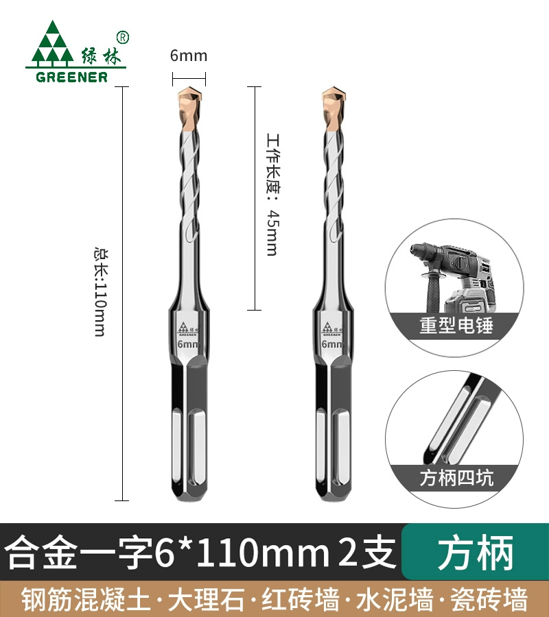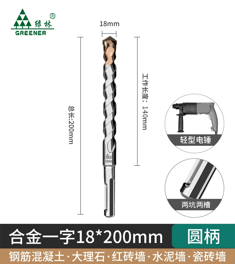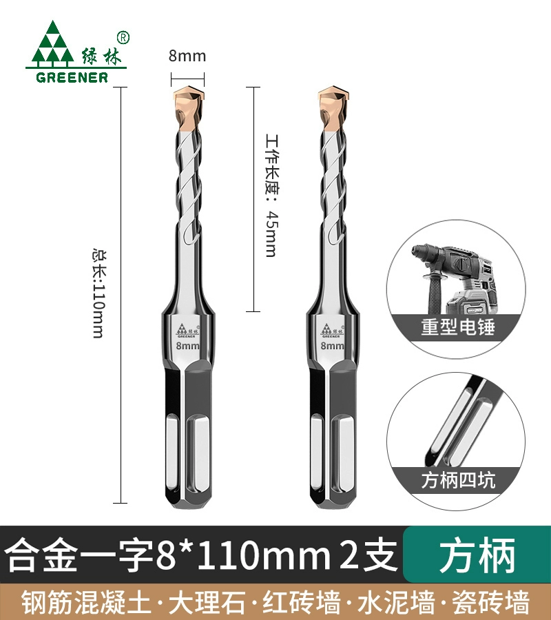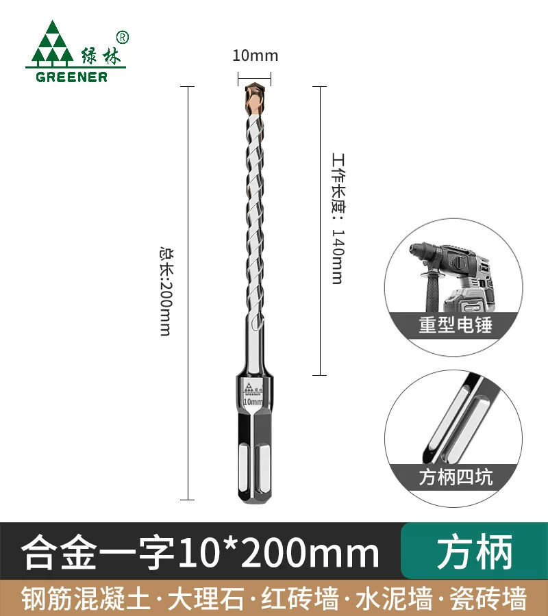 | nameOriginal | Green Forest Impact Drill Electric Hammer Through Wall Slotting Square Handle Round Handle Concrete Electric Bell Extended Drilling Turn |