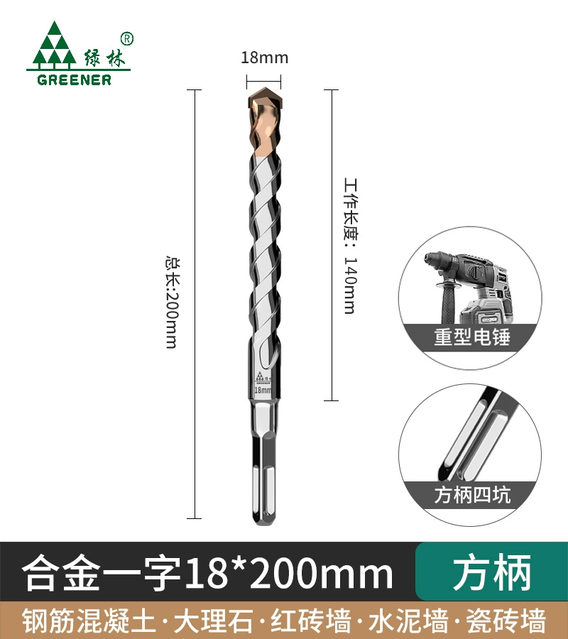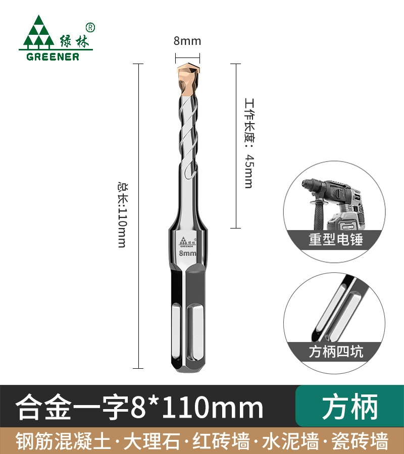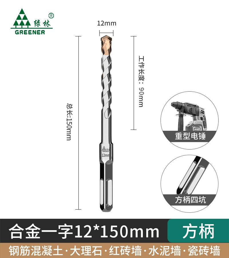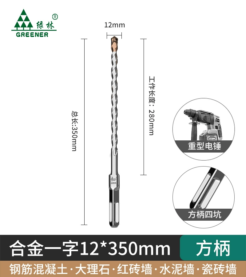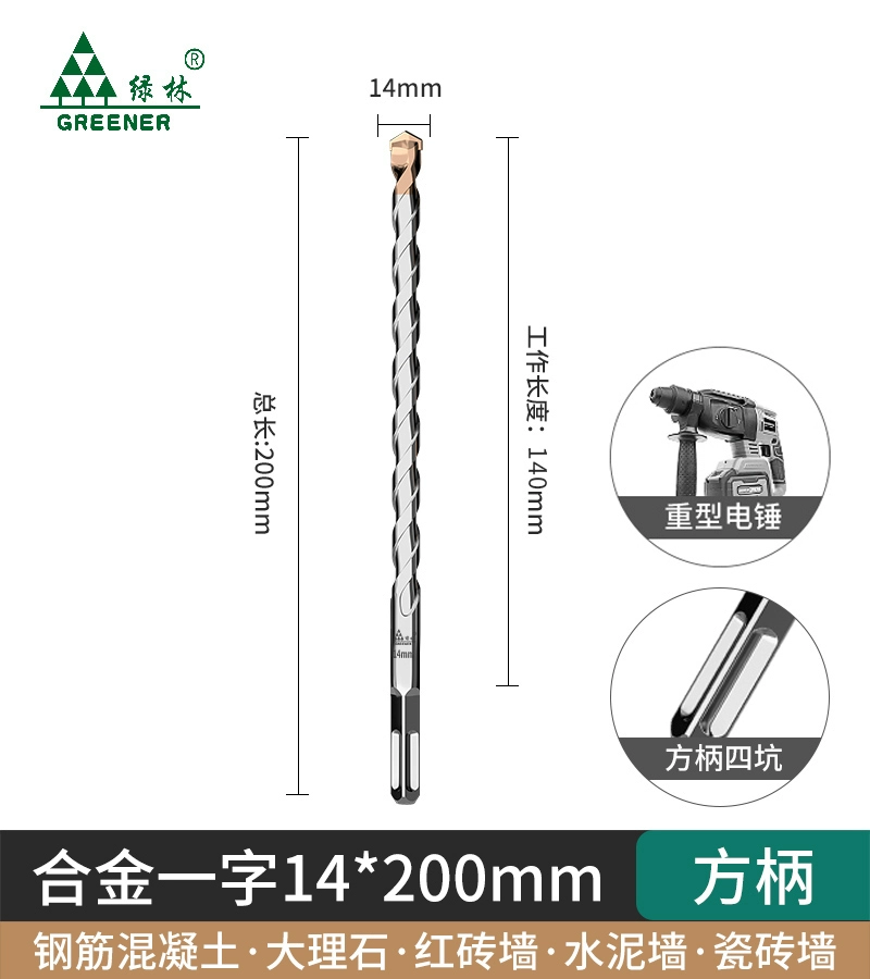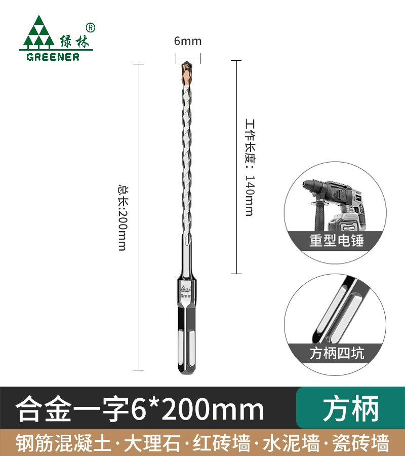 | nameOriginal | Green Forest Impact Drill Electric Hammer Through Wall Slotting Square Handle Round Handle Concrete Electric Bell Extended Drilling Turn |