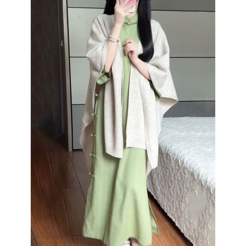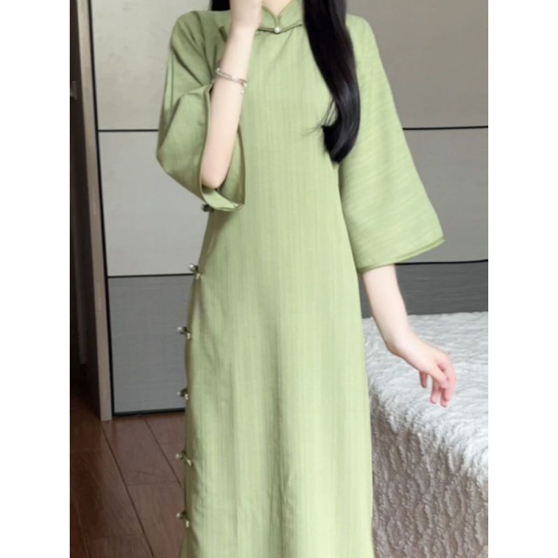 Green Improved Cheongsam Summer New 2024 Ancient Style Inverted Big Sleeve Girl’s Daily Wear Young Style Retro Republic of China