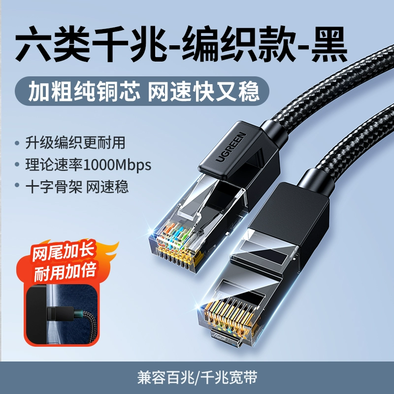 Green Internet cable home Gigabit Category 6 Super 655 connection cable computer broadband router network finished flat 10 meters