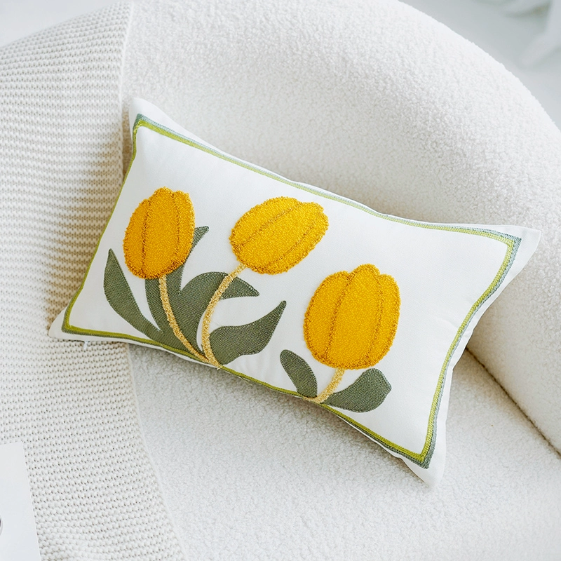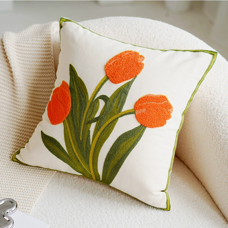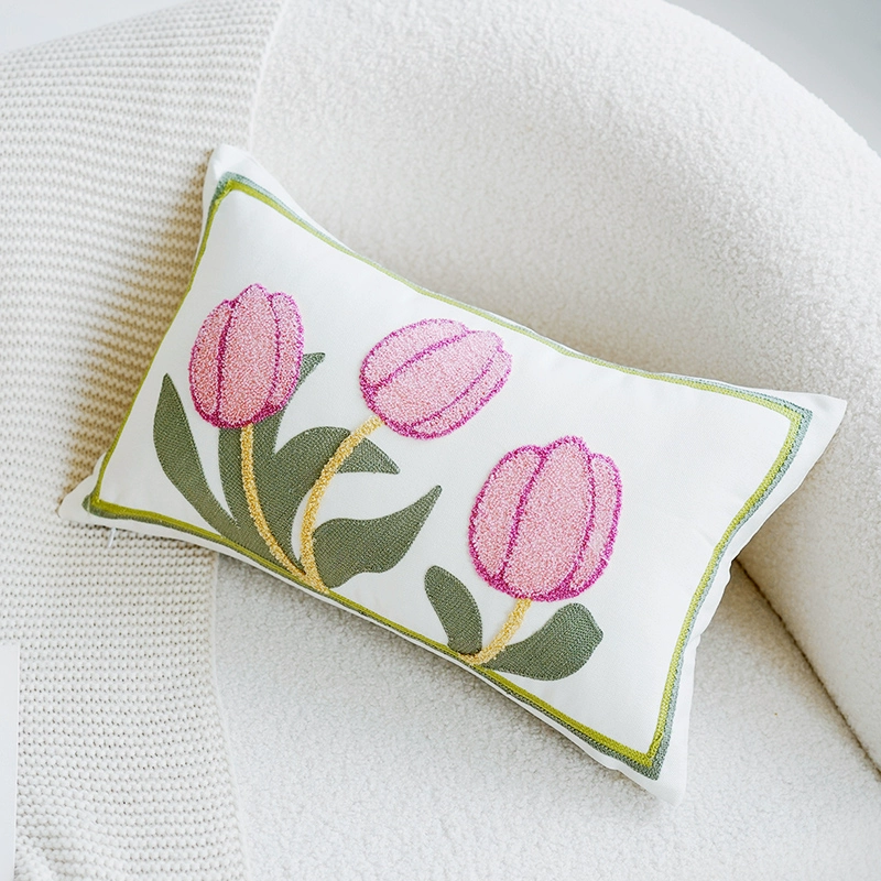 | nameOriginal | Green internet celebrity tulip cushion cute girly pink flower pillow case embroidered living room sofa back cushion |