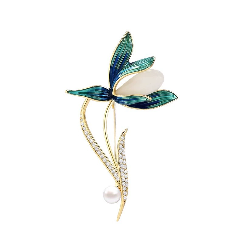 | nameOriginal | Green Jasmine Plant Flowers Pearl Vintage Brooch |