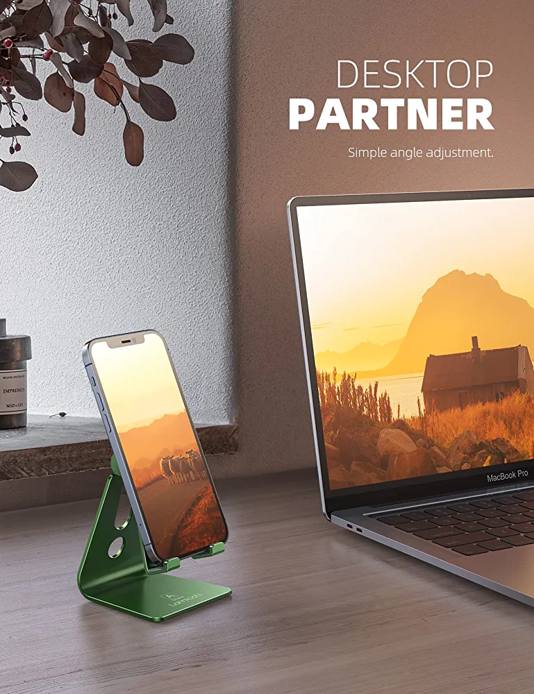 | nameOriginal | Lamicall Adjustable Phone Stand, Cell Phone Holder Desk, Compatible with Phone 13 12 Mini 11 Pro Xs Max XR X 8 7 6 Plus SE, Smartphones Dock, Office Desktop Accessories – Green |
