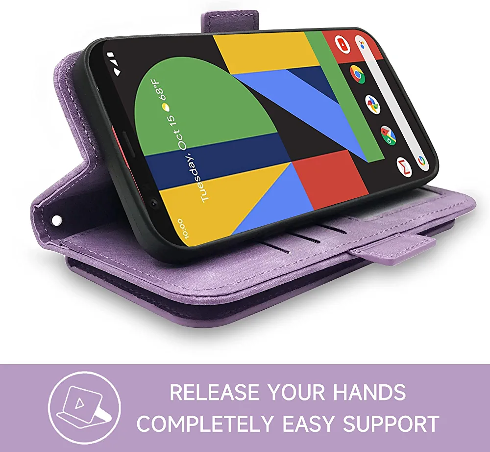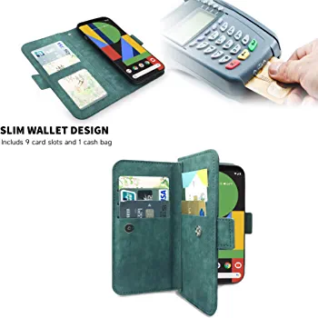 This product is specifically designed for the Google Pixel 4 (5.7 inch) and is not compatible with any other devices. It features precise cutouts for easy access to all ports and functions without the need to remove the case. The wallet case includes 9 card slots, 1 money pocket, 1 view window for your favorite photo, and a landscape kickstand. The leather material is durable and helps protect your phone from scratches, chips, and bumps. Additionally, the soft TPU full-body inner case provides extra protection against drops and bumps.
