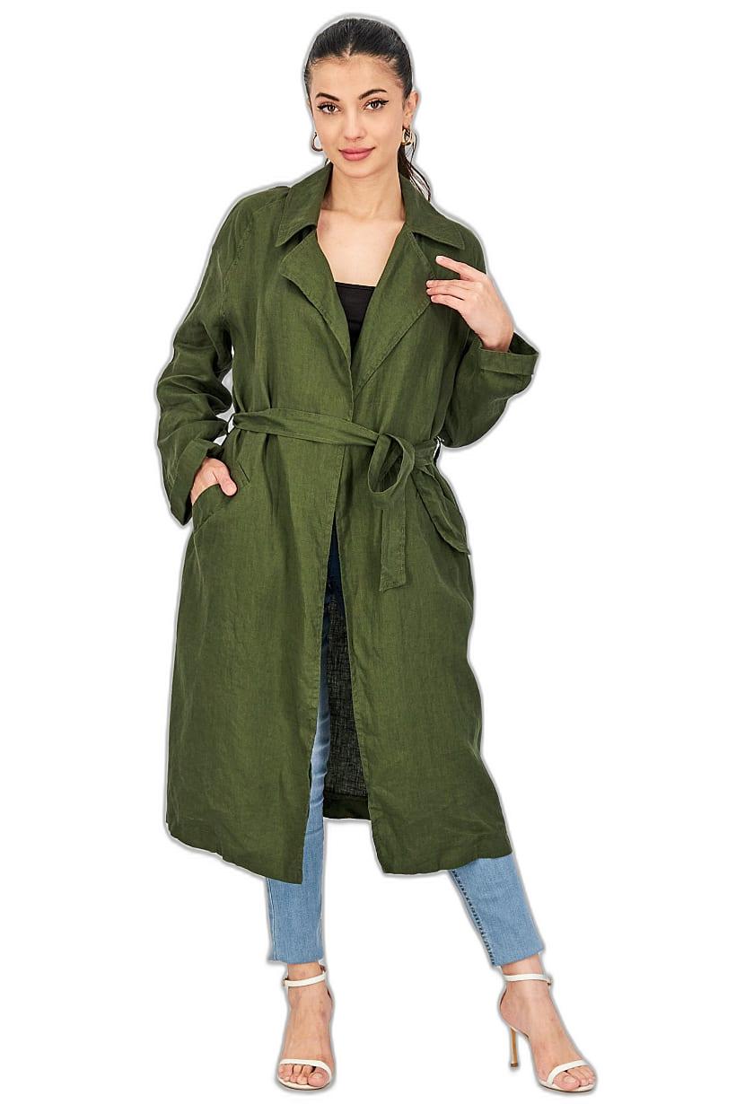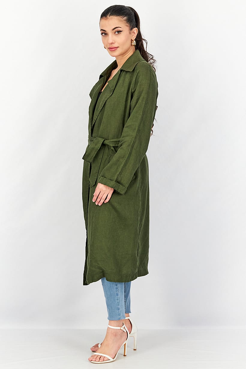 | nameOriginal | Women Open Front Linen Long Sleeve Trench Coat, Green |