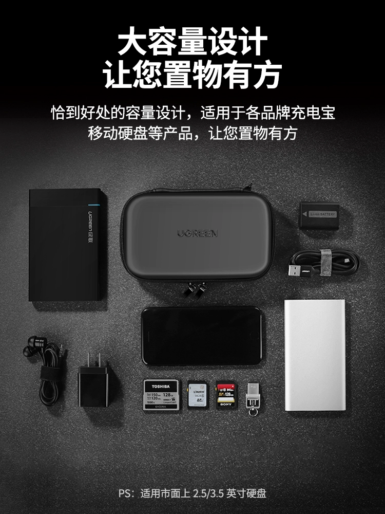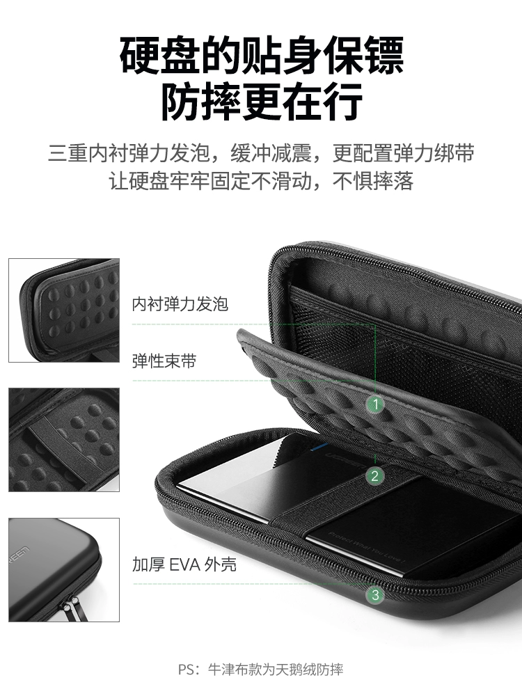 Green Link Mobile Hard Drive Bag 2.5-inch Headphone Storage Box Data Cable Mouse Laptop Power Cord U Disk Power Bank Charger U Shield Protective Case Anti-fall Portable Multi-Function Digital Storage Bag