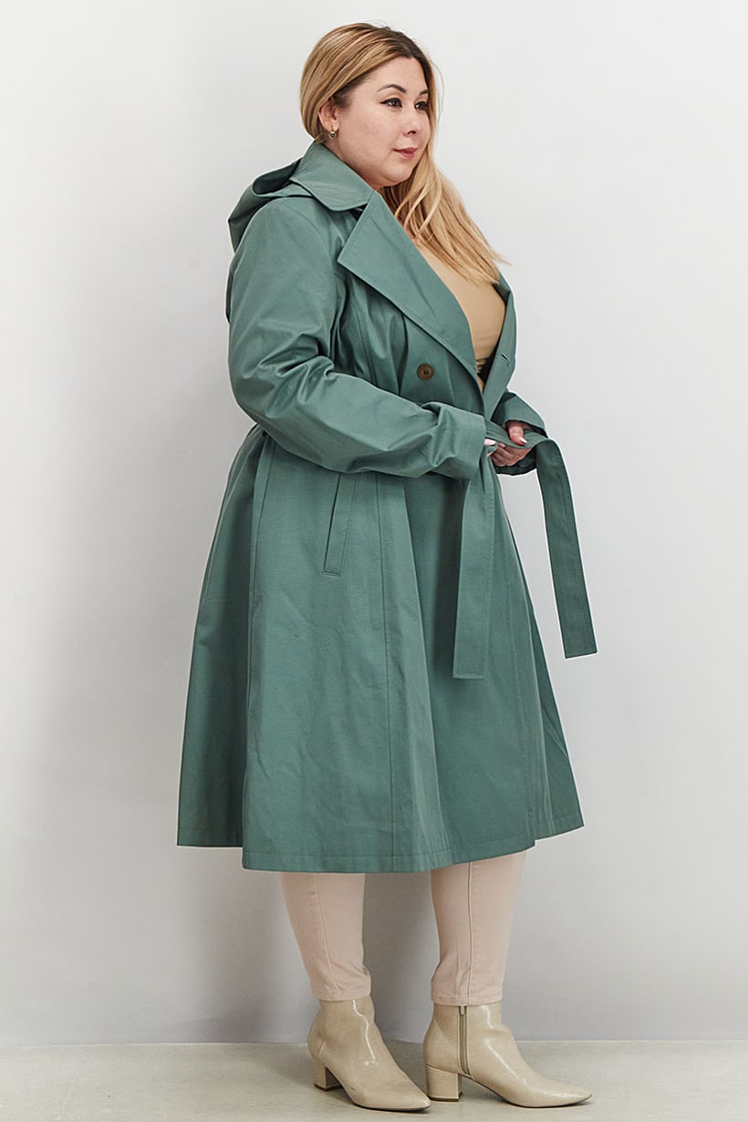 | nameOriginal | Women Removable Hooded Belted Long Trench Coat, Green |