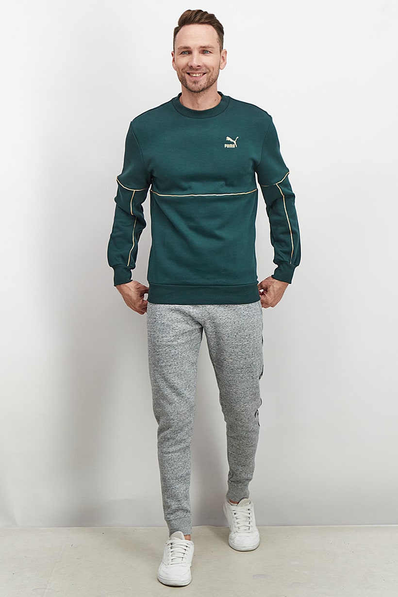 Men Clothing, Sportswear, men crew neck brand logo long sleeve sweatshirt green