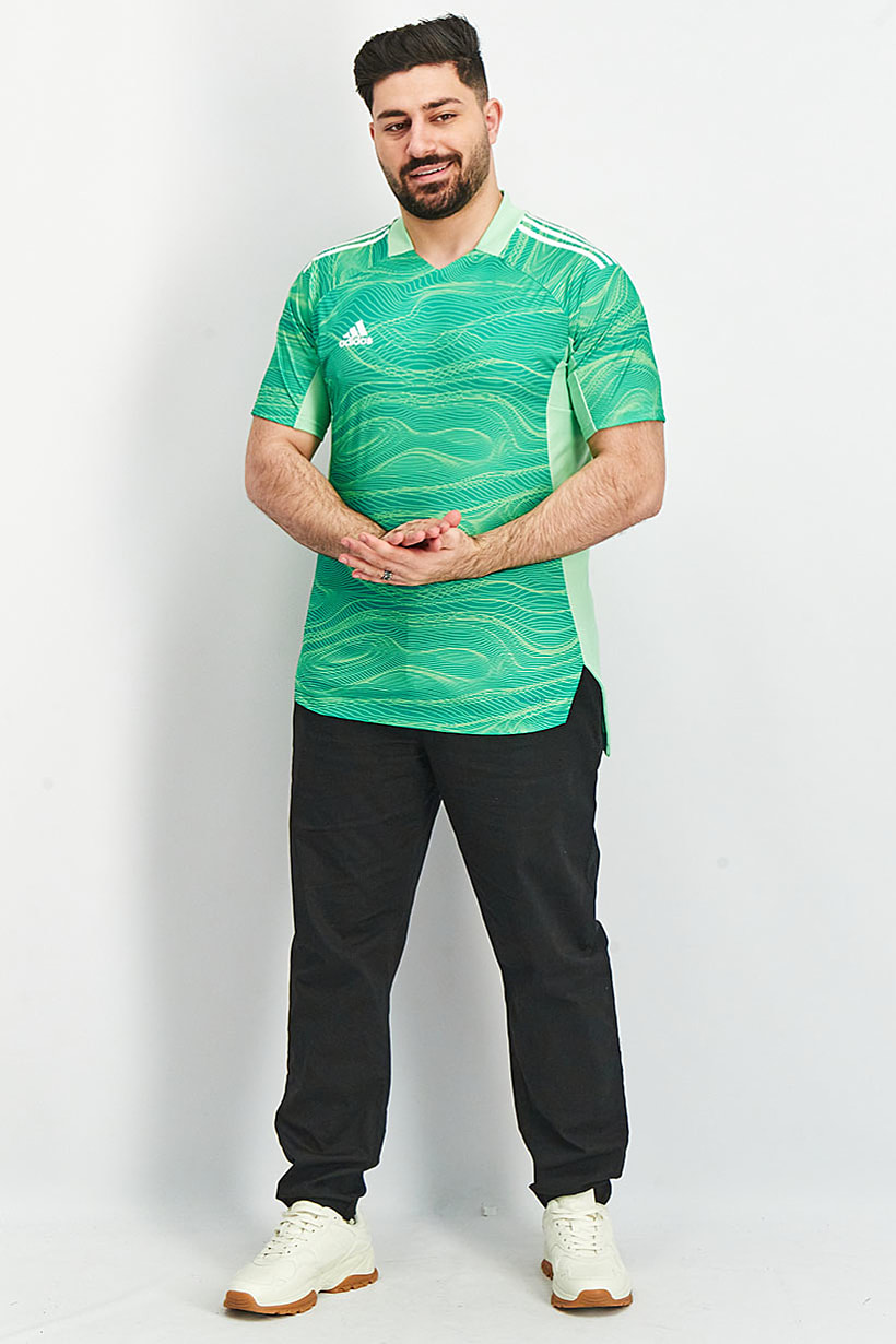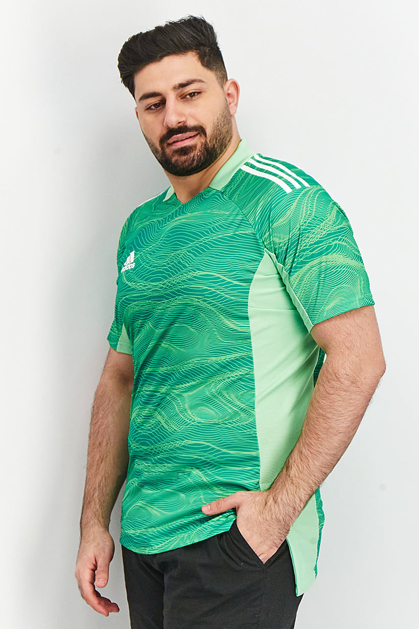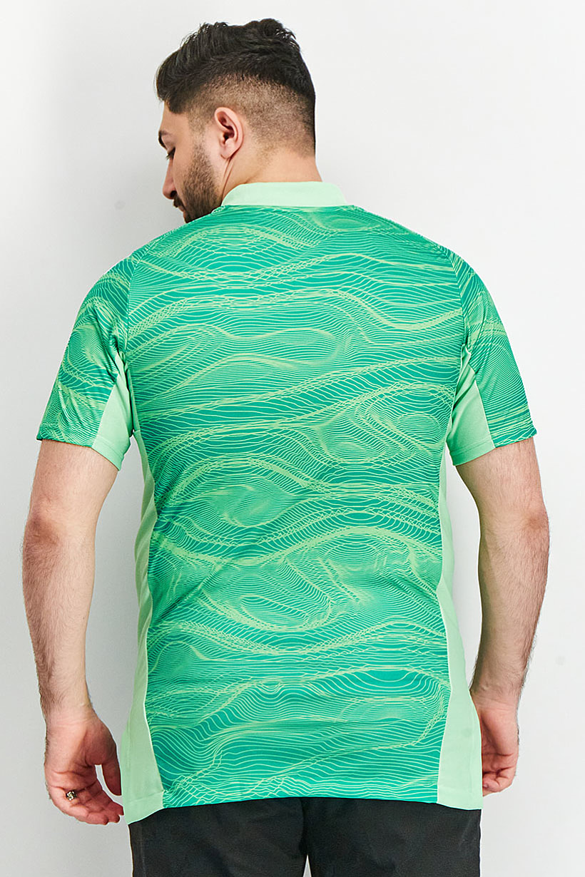 This product is easy to care for as it is machine washable. It has a sportswear fit and is available in Japan size. The fabric is made of 100% recycled polyester and is light in thickness, making it suitable for training. The t-shirt has an allover print and is ideal for sports occasions. It has a pullover closure and comes in a green color family. Please note that the product color may slightly vary due to photographic lighting sources or monitor settings.