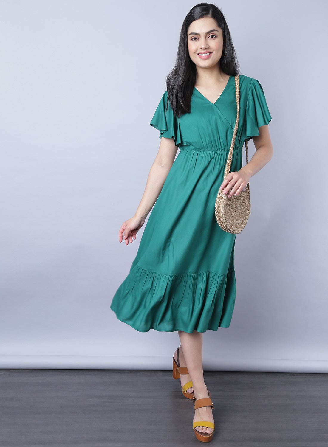 | nameOriginal | Short Sleeve Midi Dress Green |