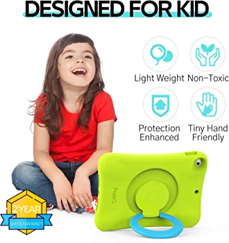 This product is a protective case designed for the iPad 8th and 7th generation models. It is specifically made for kids, with non-toxic and shock-absorbing EVA flexible foam that is lightweight and comfortable for small hands. The case provides excellent protection with its unique corner design, rugged front frame, and full-body shockproof material. It also features a multi-function handle-kickstand that allows for multiple viewing and typing positions, and can be used as a stable stand on various surfaces. Additionally, the stand can be opened as a comfortable handle for carrying. PEPKOO is committed to providing reliable quality and offers a 2-year free limited warranty for your peace of mind. Don’t hesitate, take action now!