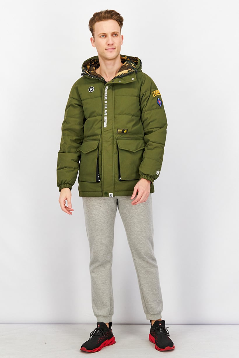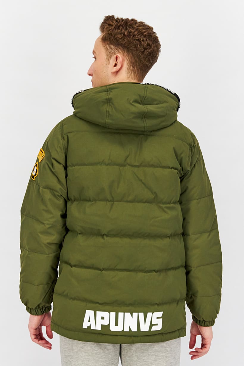 | sub_Categories | Men Clothing, Jackets & Outerwear, men hooded brand logo puffer jacket green |