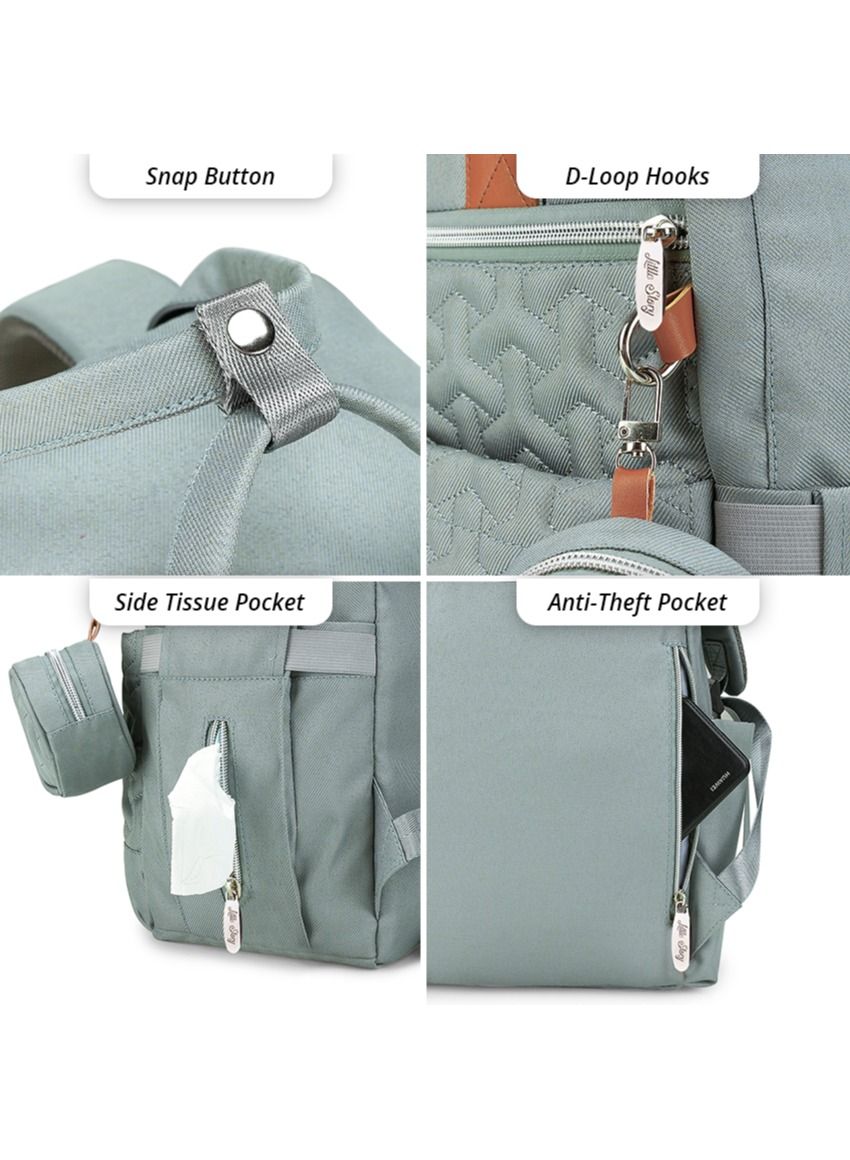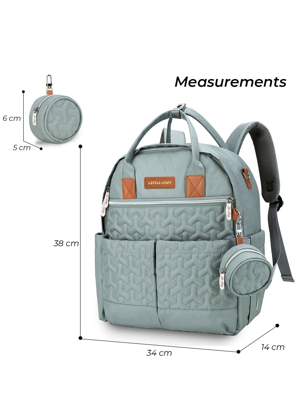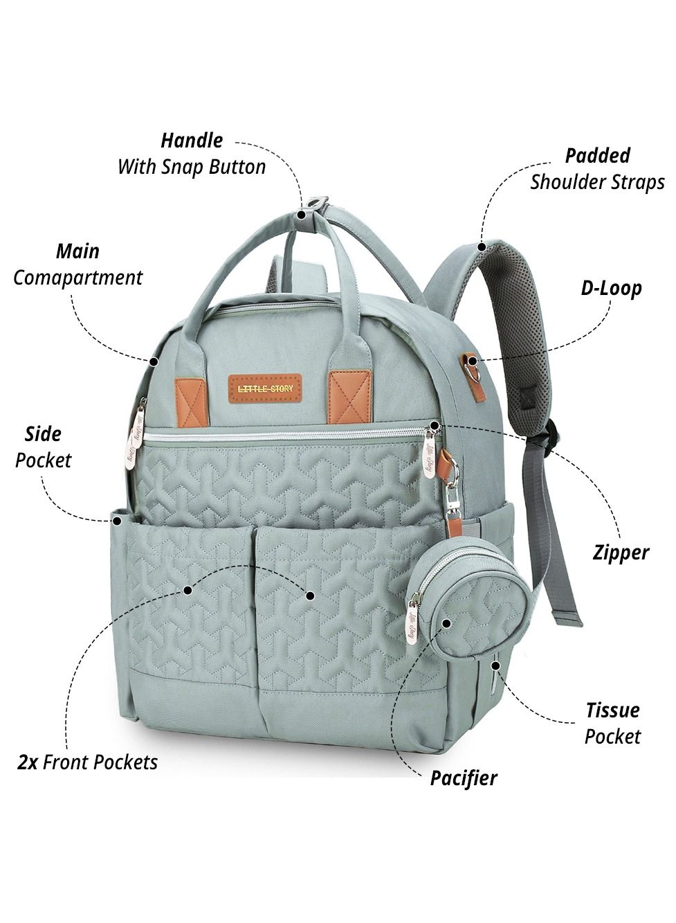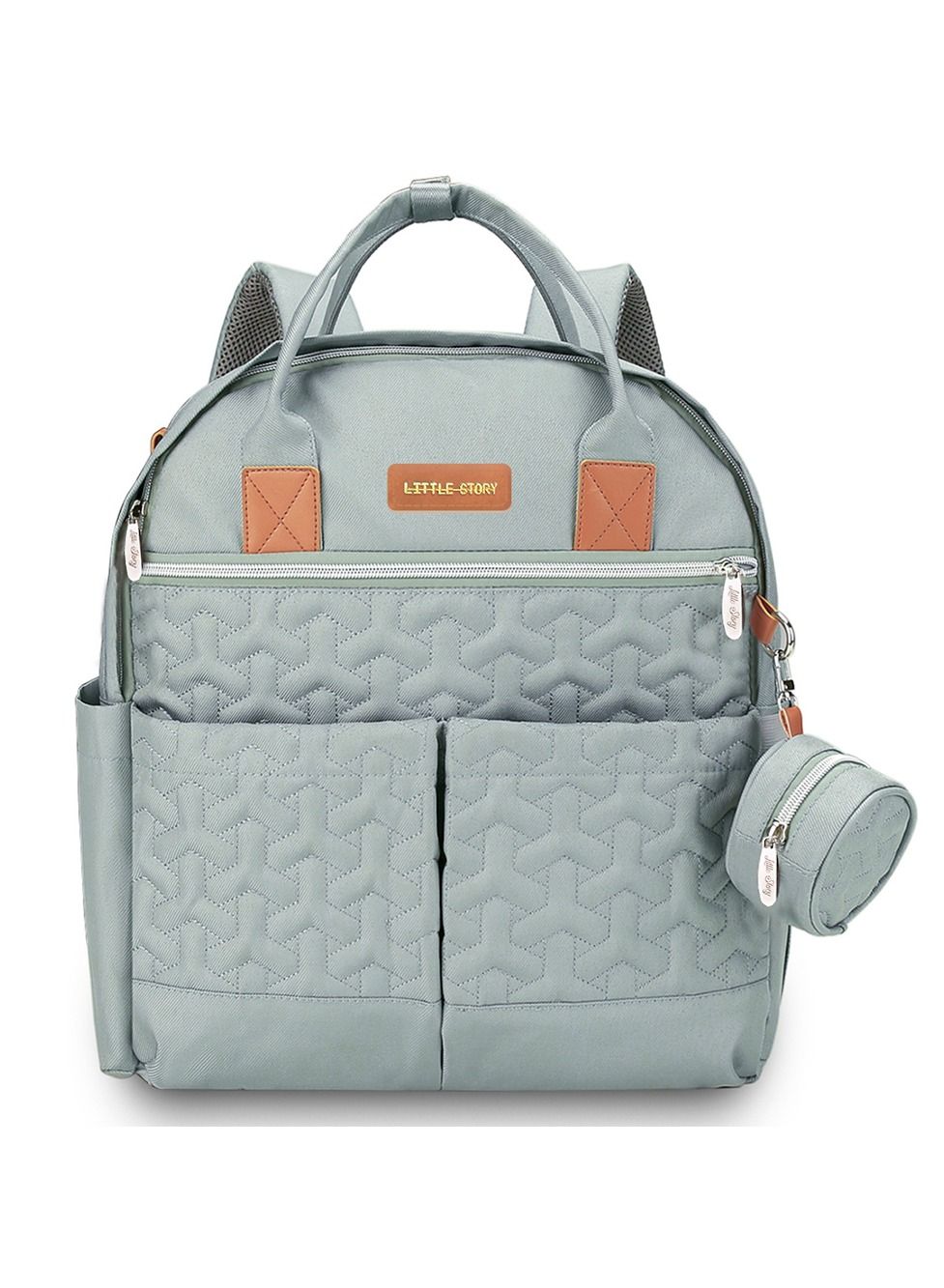 Introducing our stylish and functional Quilted Diaper Backpack in Wedgewood Green! This backpack is the perfect solution for busy parents who need to carry all their baby essentials while on-the-go. The backpack features a spacious main compartment with multiple pockets to keep everything organized and easily accessible. The quilted design adds a touch of elegance to the backpack, making it a fashionable accessory for any outfit.