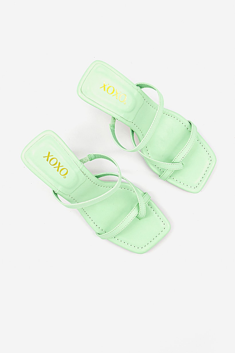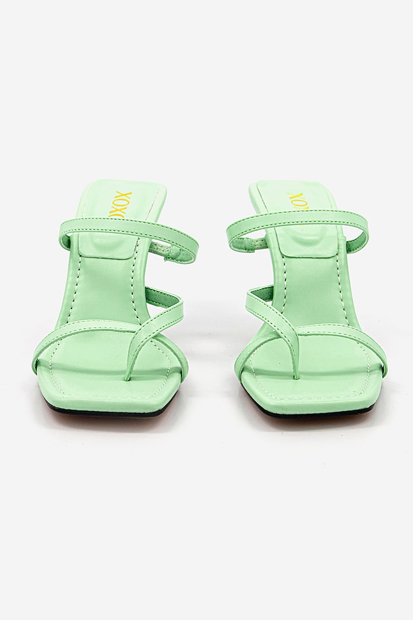 Heel Height : 3.5" / 8.9 cm, Heel Style : Stiletto heel, Ideal For : Women, Shoe Closure : Slip on, Sole Material : Synthetic sole, Toe Style : Open toe, Occasion : Casual, Shoe Material : Synthetic Leather, Color Family : Green,