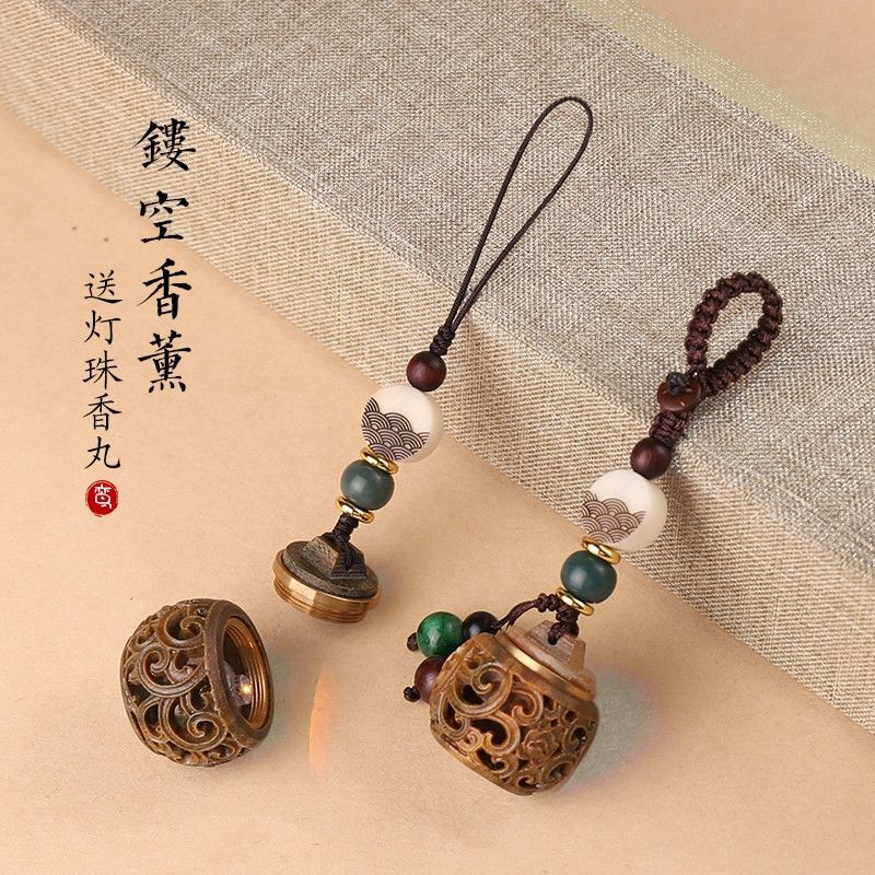 Green sandalwood sachet pendant exquisite hollow antique fragrance fragrance ball car mobile phone pendant keychain